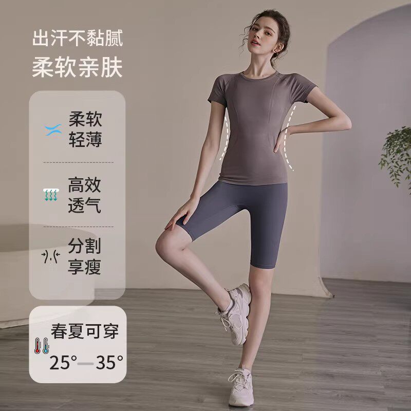 LULU VURU运动瑜伽服短袖女速干跑步训练普拉提上衣显瘦健身套装