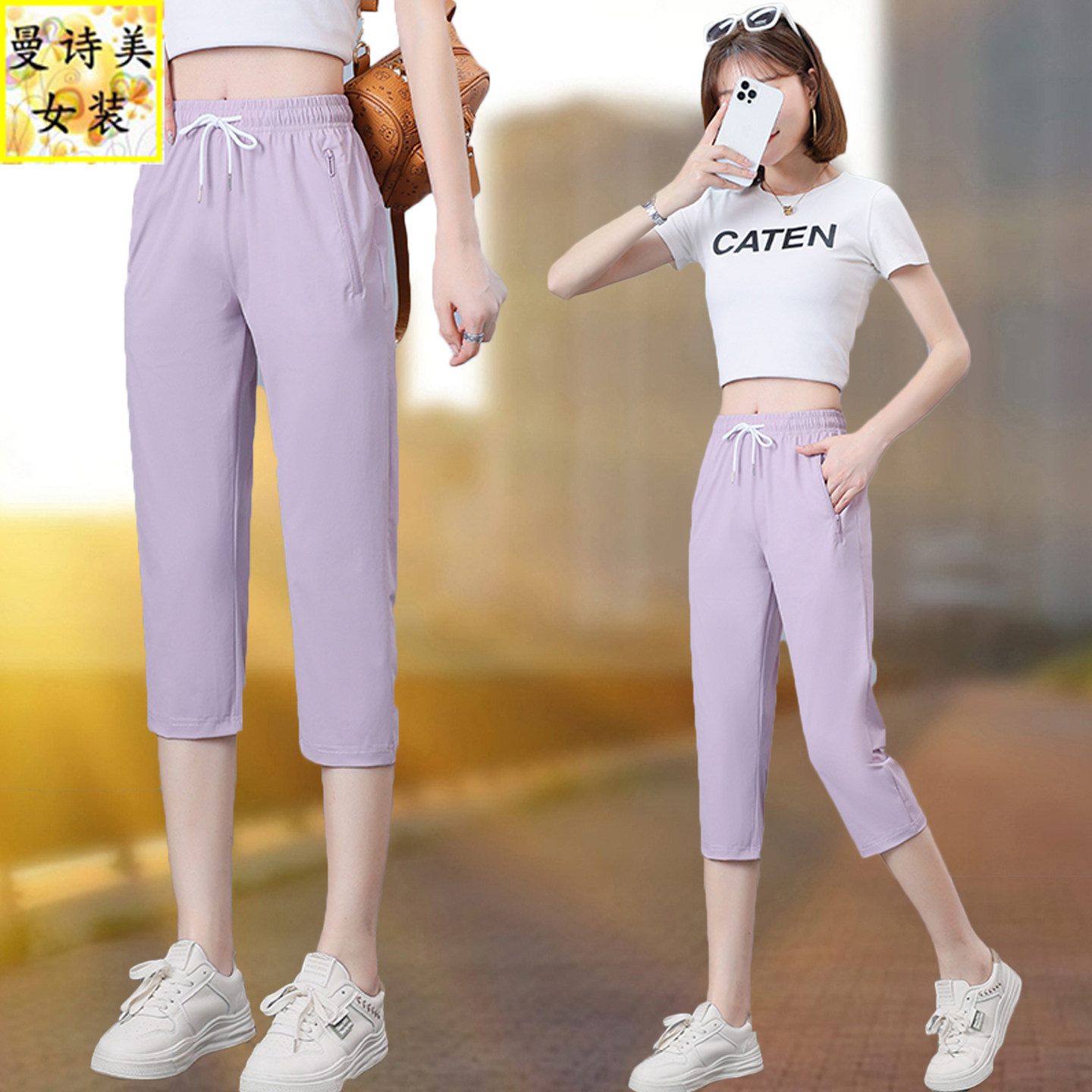 七分冰丝裤女夏季薄款2026新款显瘦速干休闲运动裤女士夏天中裤子