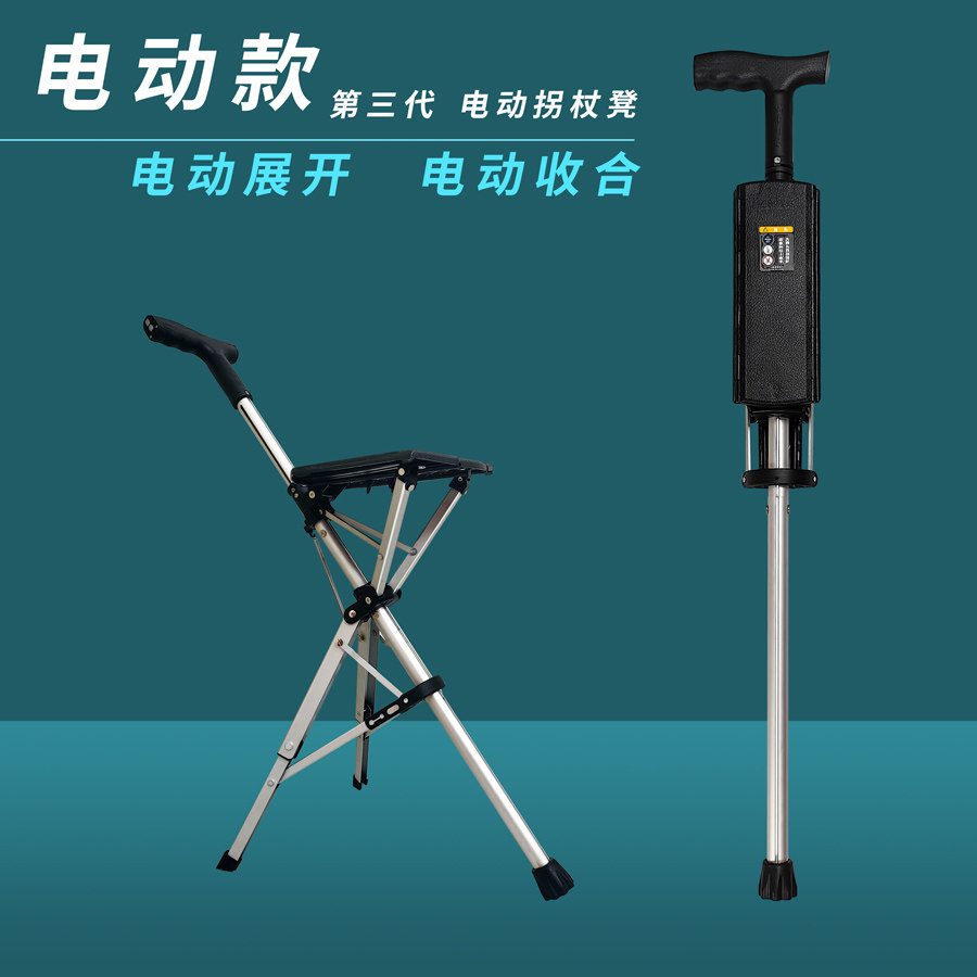 电动拐杖座椅铝合金休息椅礼品台达椅轻便一键可折叠出行登山旅游