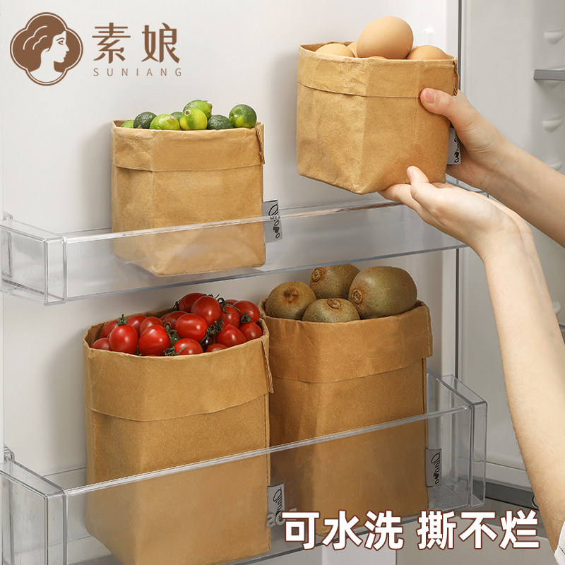 素娘可水洗牛皮纸袋厚防水加冰箱水果蔬菜收纳袋食品级花盆方形大