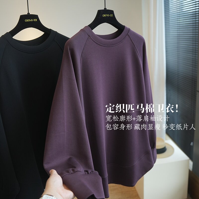 定织匹马棉!宽松阔版落肩长袖卫衣女外套上衣2026春季新款A104K