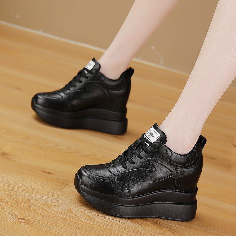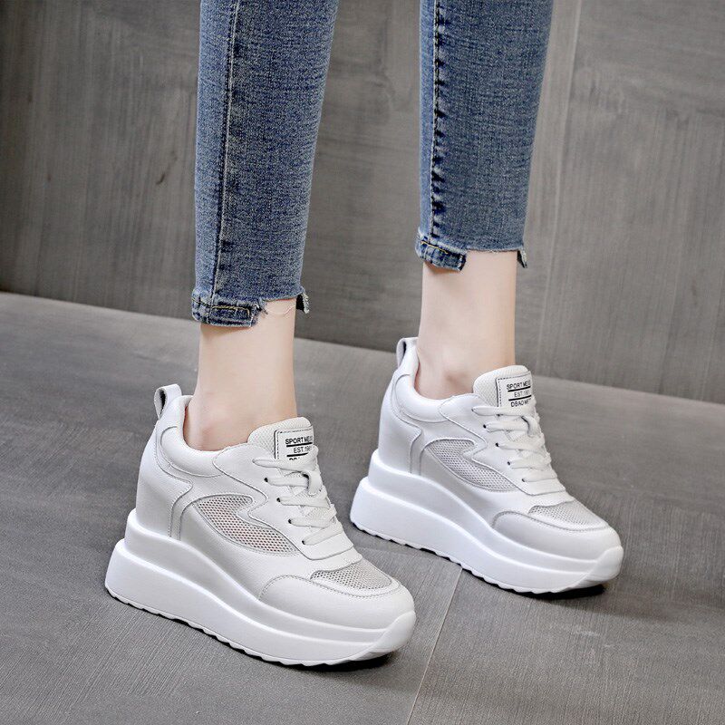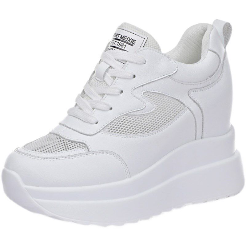 夏天老爹鞋女透气内增高女鞋10cm小个子显高真皮小白鞋厚底运动鞋