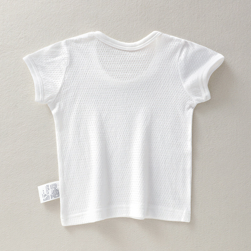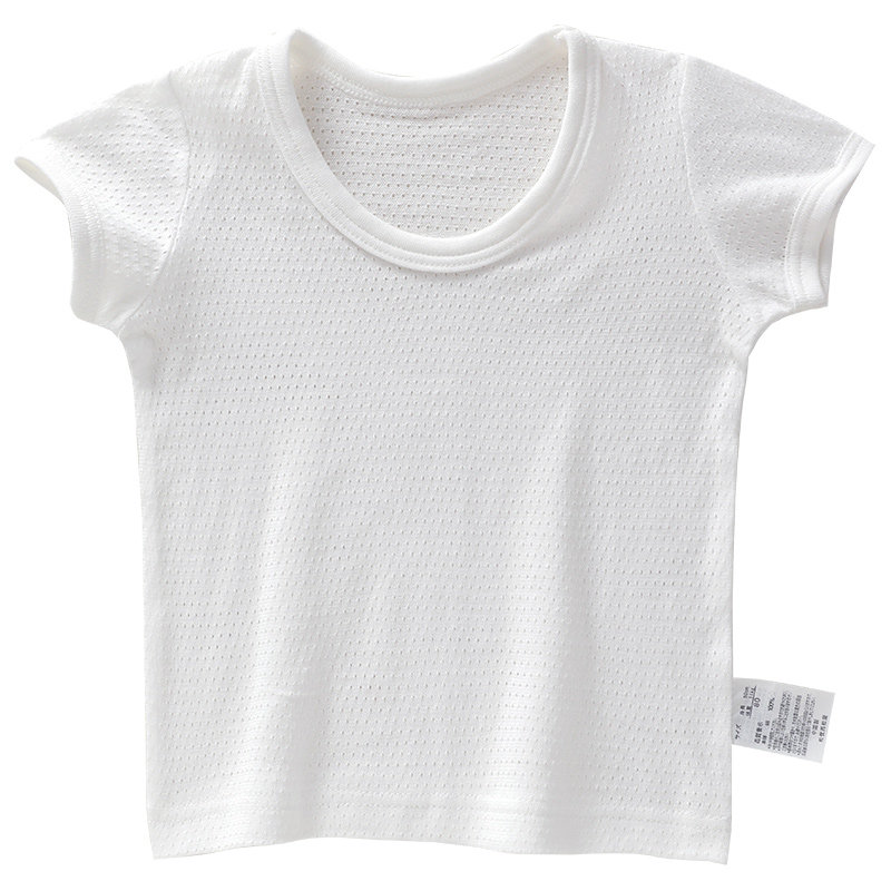 儿童白色短袖t恤宝宝夏季纯棉网眼上衣白男童女童半袖纯白夏装a类
