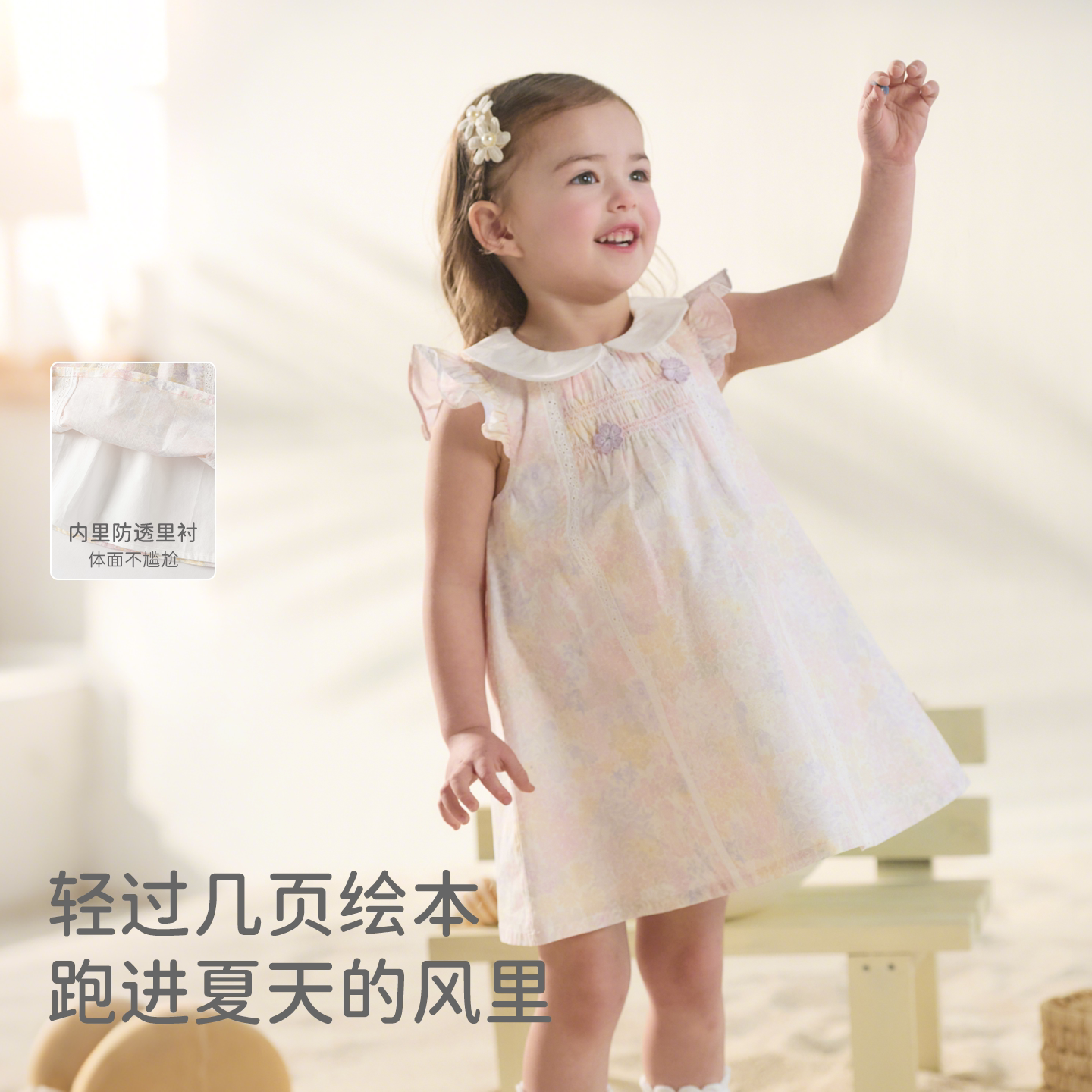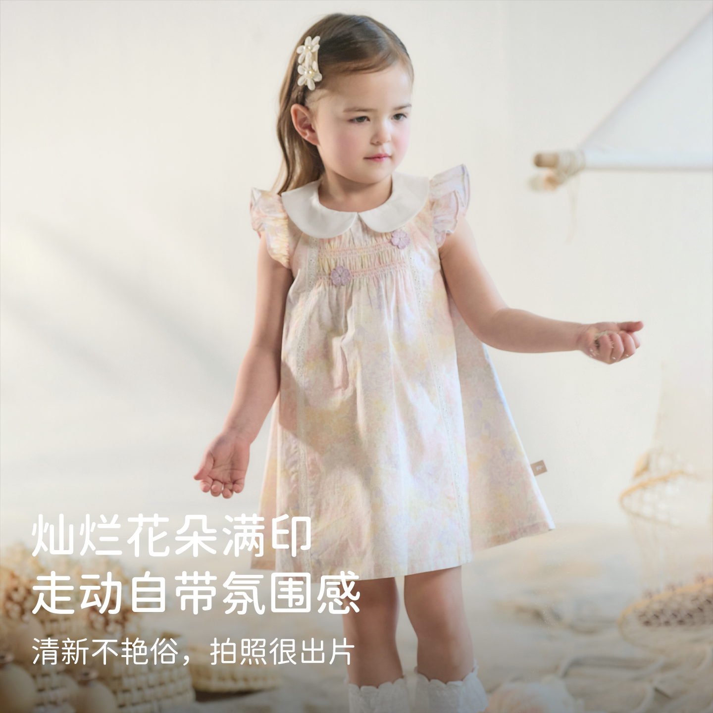 戴维贝拉女童纯棉连衣裙宝宝A类印花裙子2026夏装新款儿童公主裙
