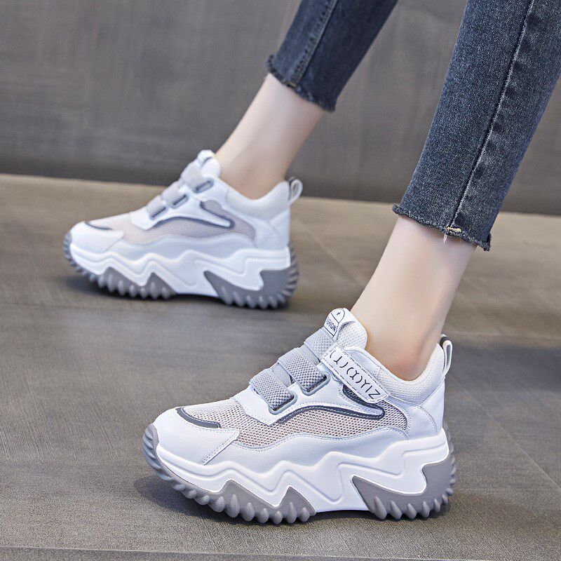 内增高女鞋2024夏天穿裙子搭配的鞋子厚底网面休闲运动小白鞋网鞋