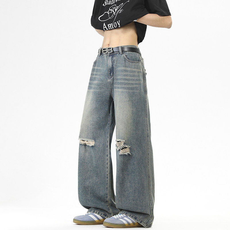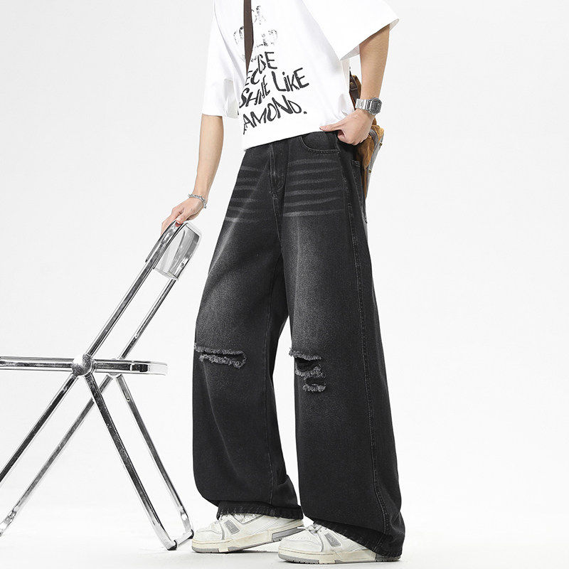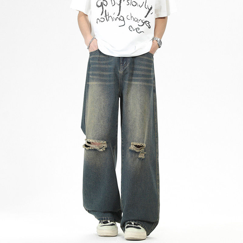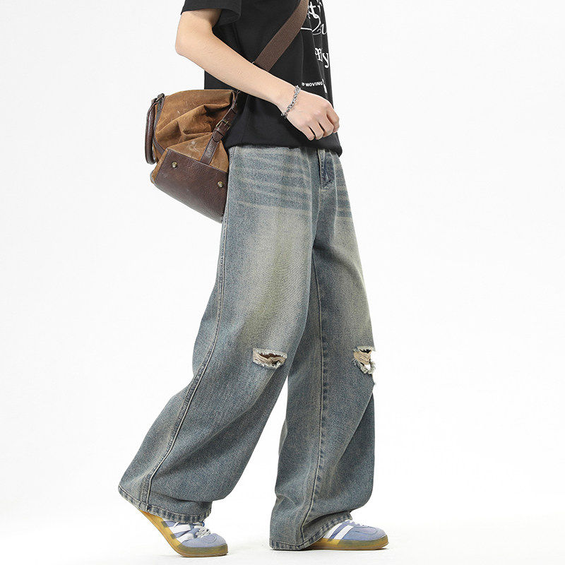 2026夏季新款重磅美式破洞牛仔裤男款潮牌宽松直筒阔腿休闲长裤子