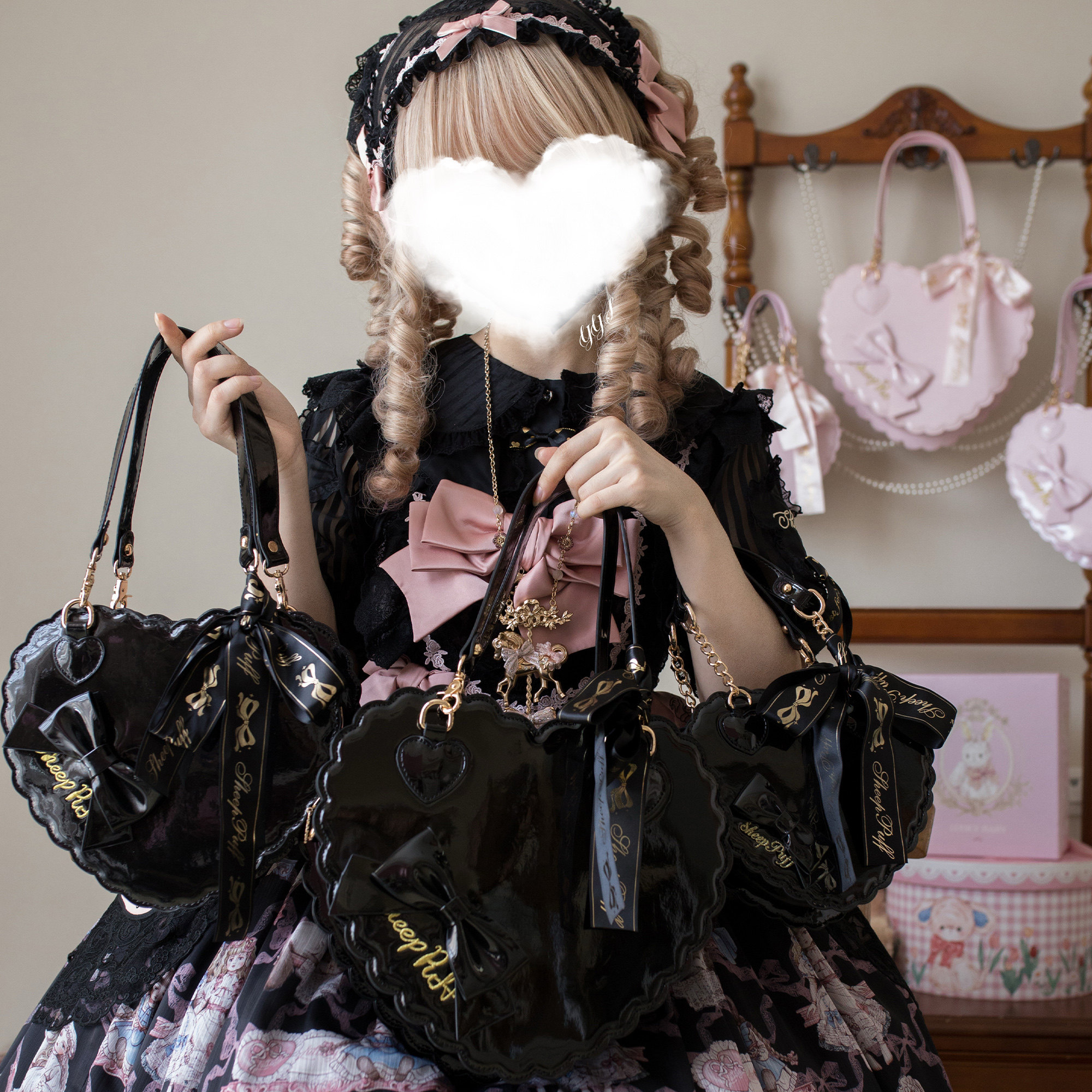 【六团现货】绵羊泡芙爱心包漆皮哑光大中小号lolita手提斜挎包