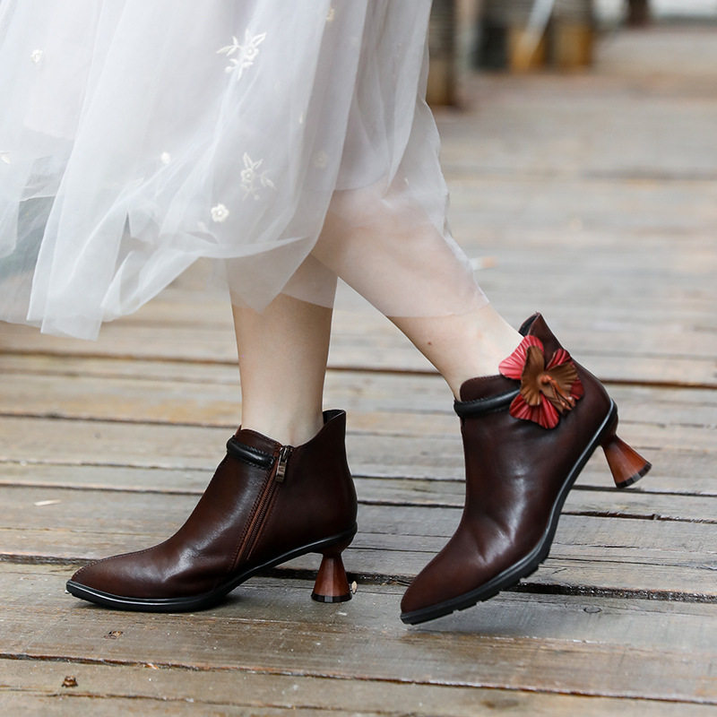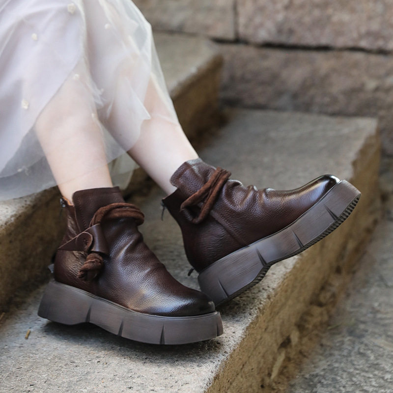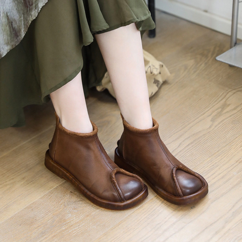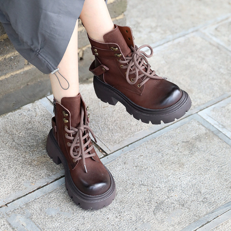 断码女鞋 头层牛皮短靴子复古真皮单鞋高帮单靴女软底妈妈鞋