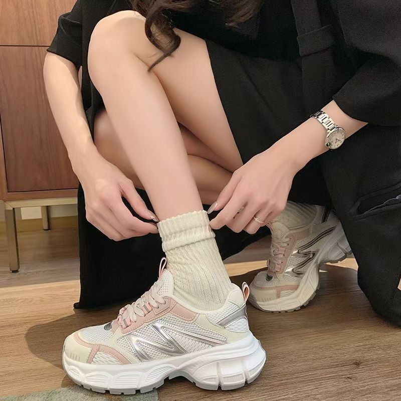青岛福客来女鞋源头工厂透气增高老爹鞋女2026春秋薄款轻便防滑运