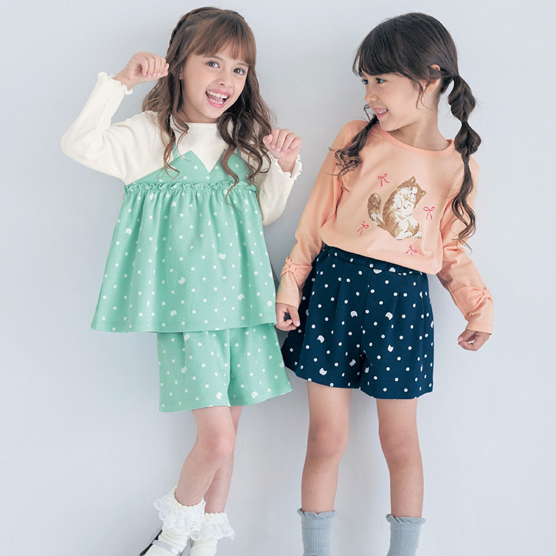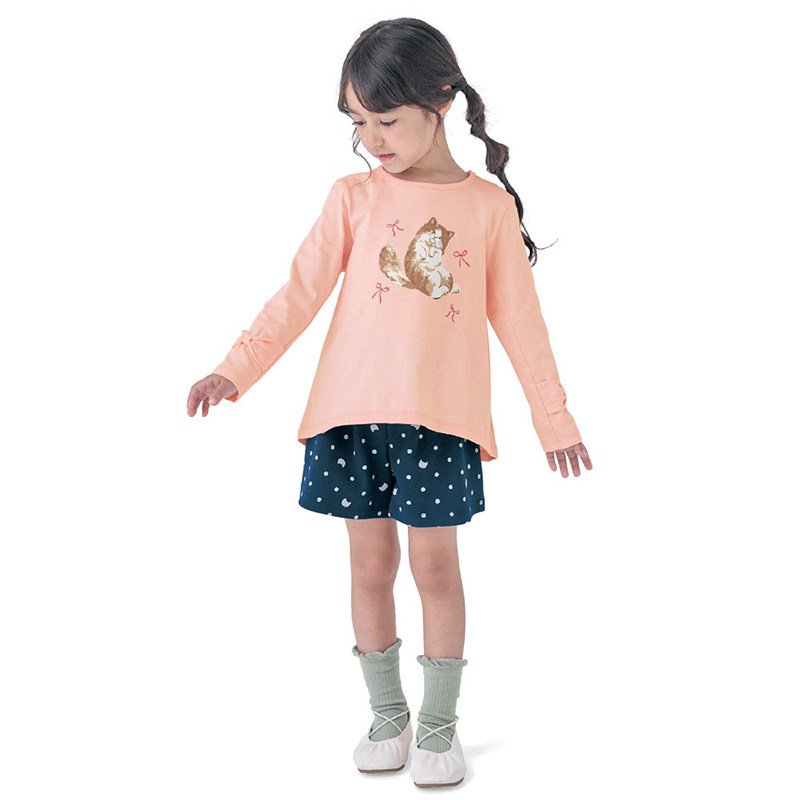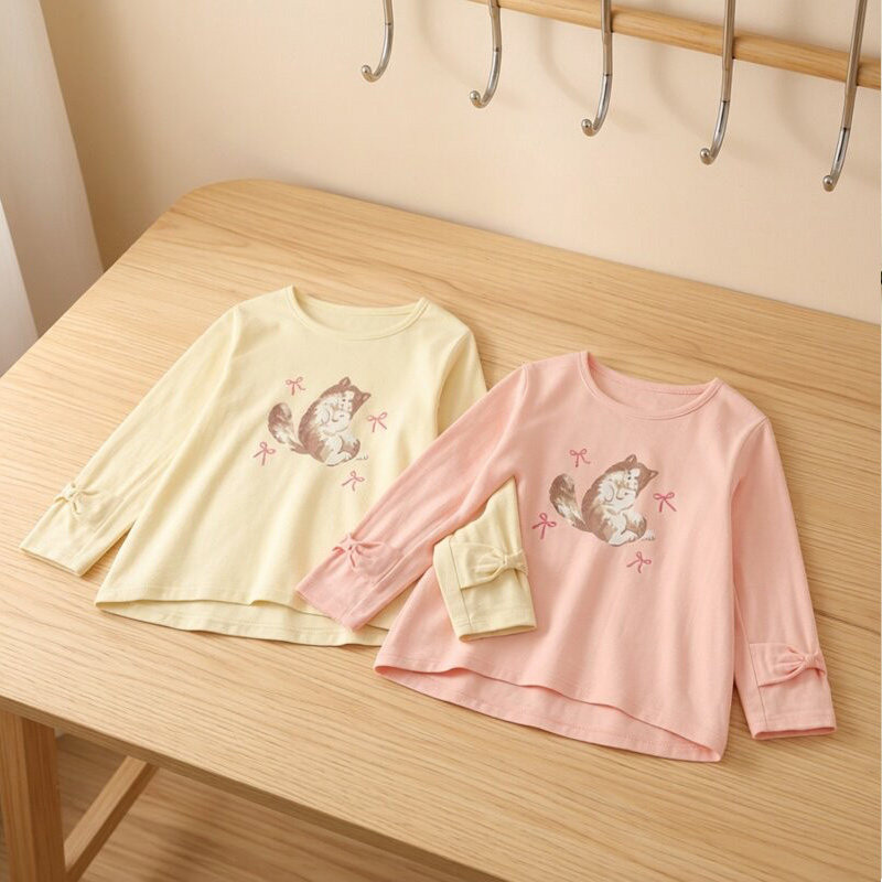 女童春秋棉质上衣 原单休闲可爱猫咪印花 圆领A字形裙式长袖T恤衫
