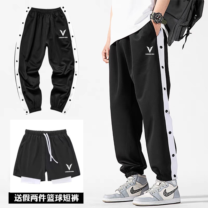 夏季篮球排扣裤男科比库里全开扣秒脱儿童运动长裤美式薄款训练裤