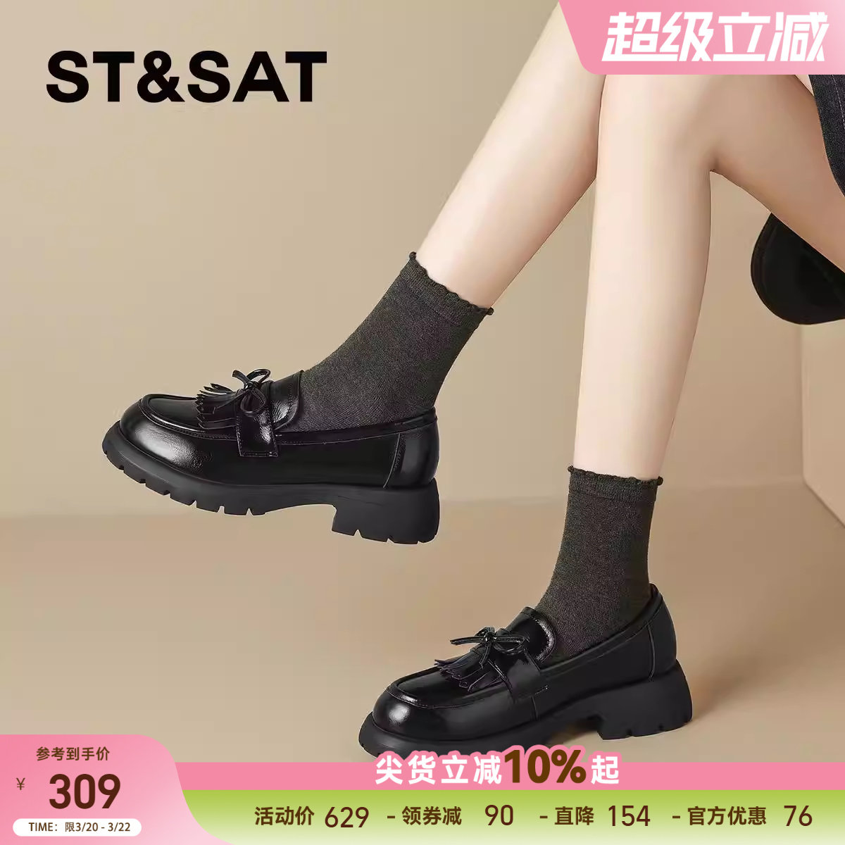 星期六真皮蝴蝶结小皮鞋女鞋子2025春夏新款厚底增高学院风乐福鞋