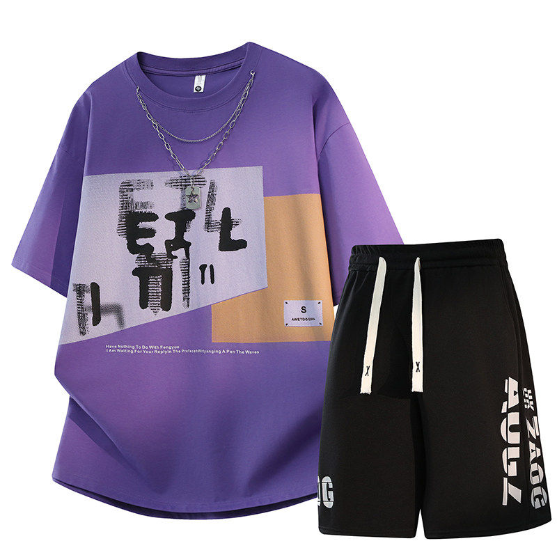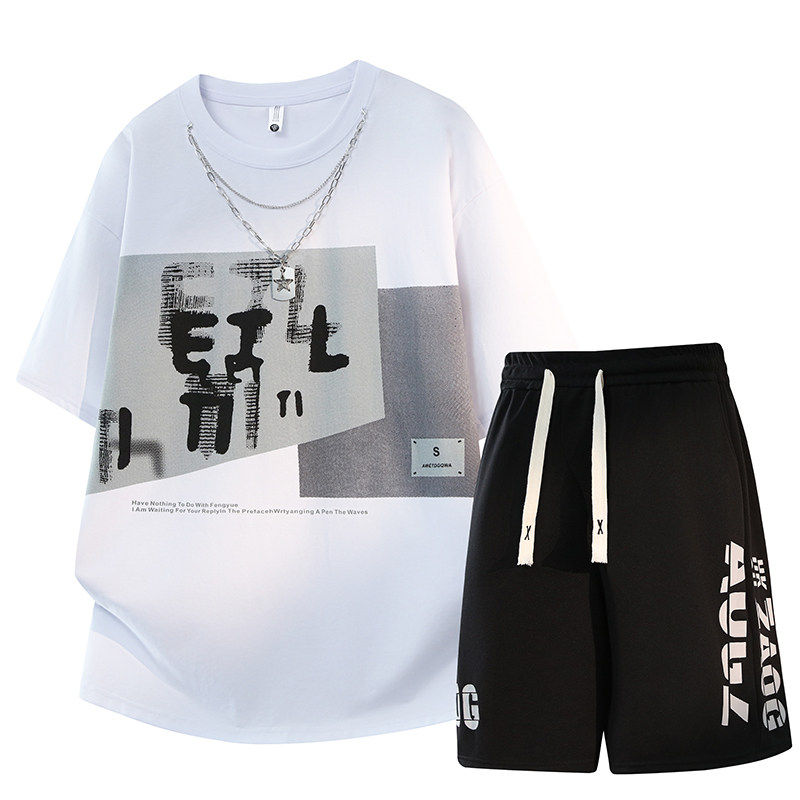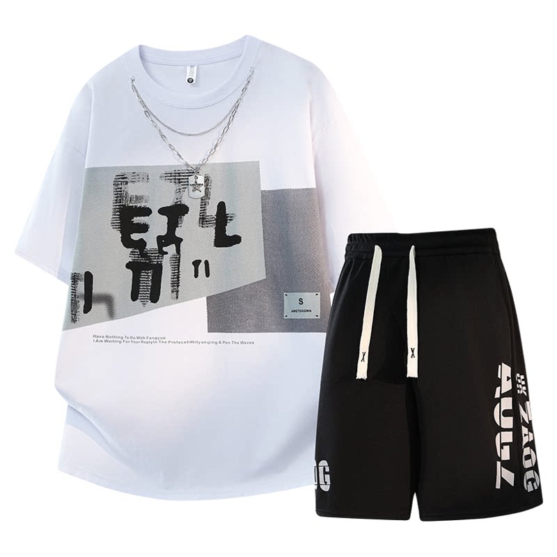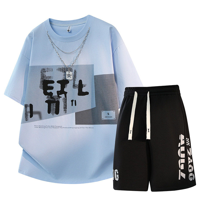夏装潮流短袖t恤男孩学生半袖青少年胖大童男装短裤休闲套装男装