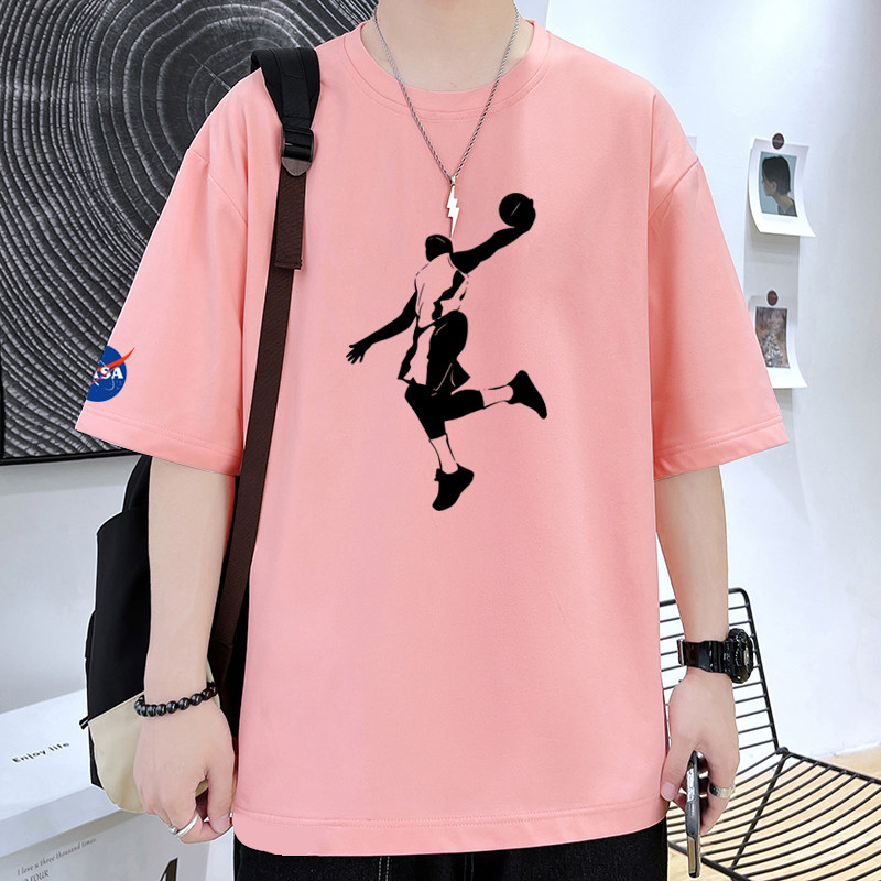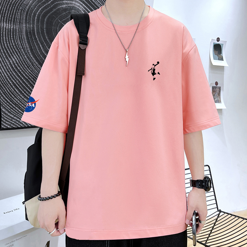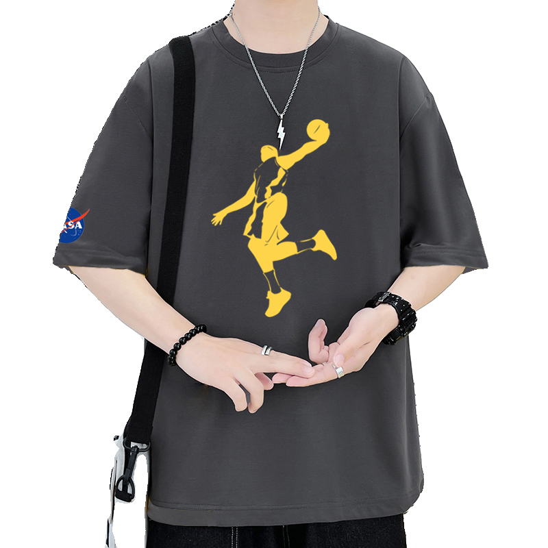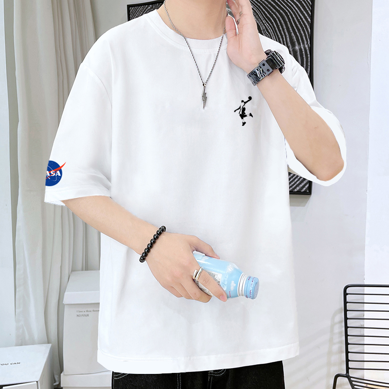 NASA夏季100%纯棉短袖男潮牌全棉宽松大码半袖扣篮帅气青少年T恤