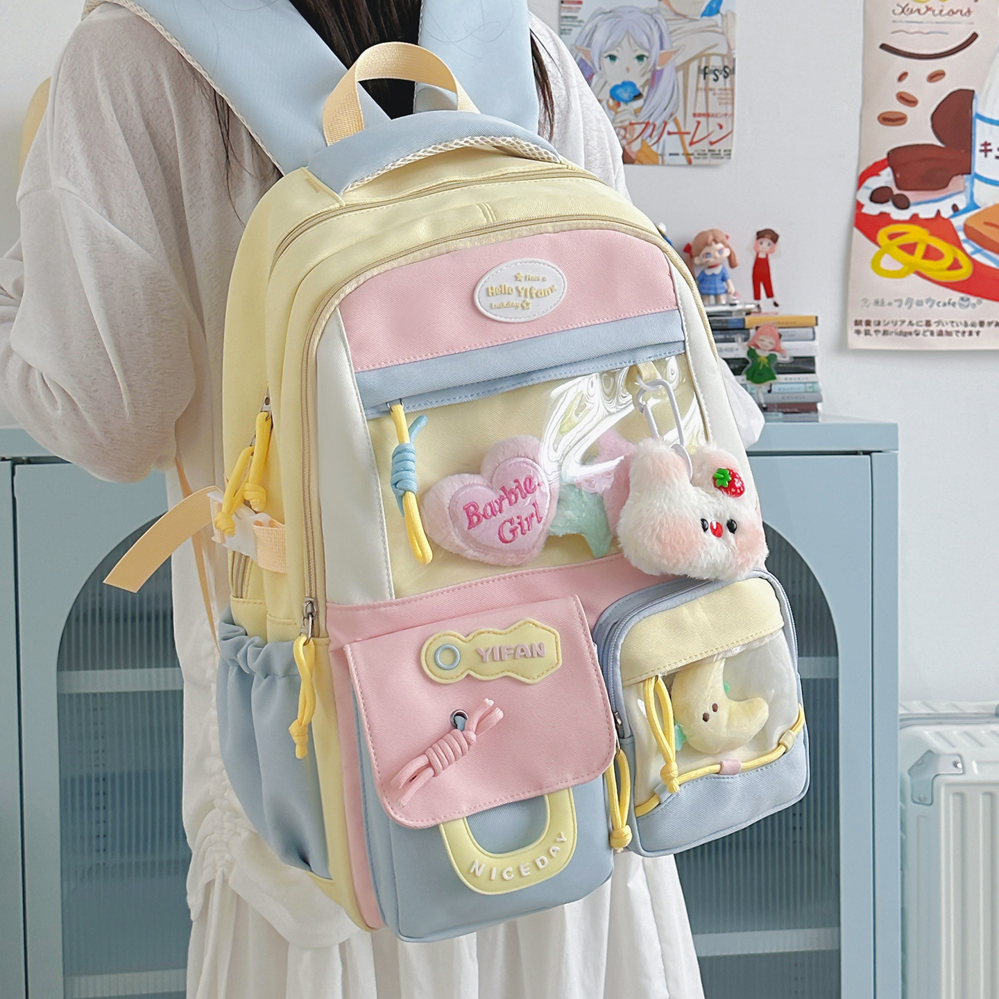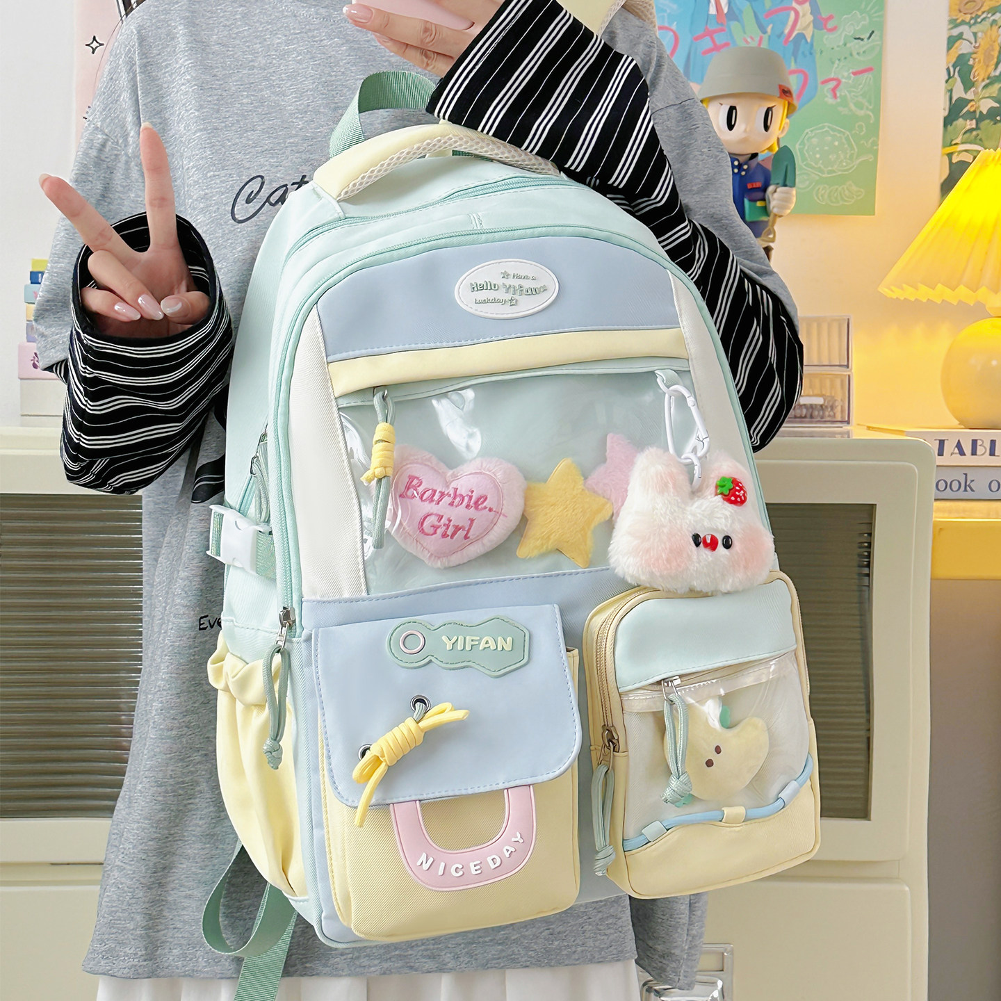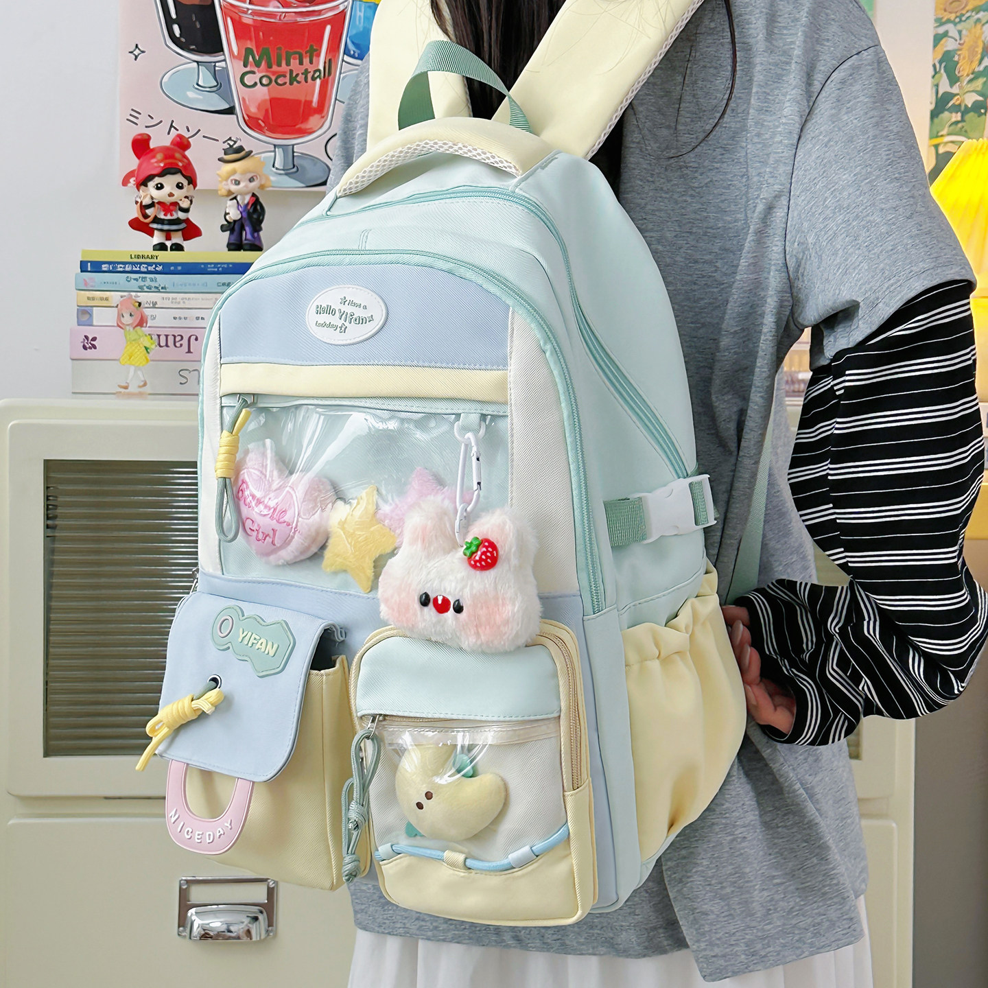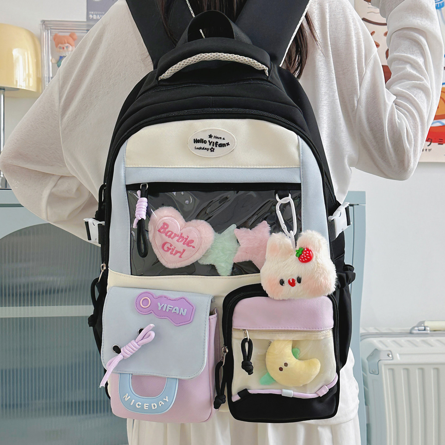 书包初中女生高颜值小众黑色ins耐脏大容量双肩包带透明隔层背包