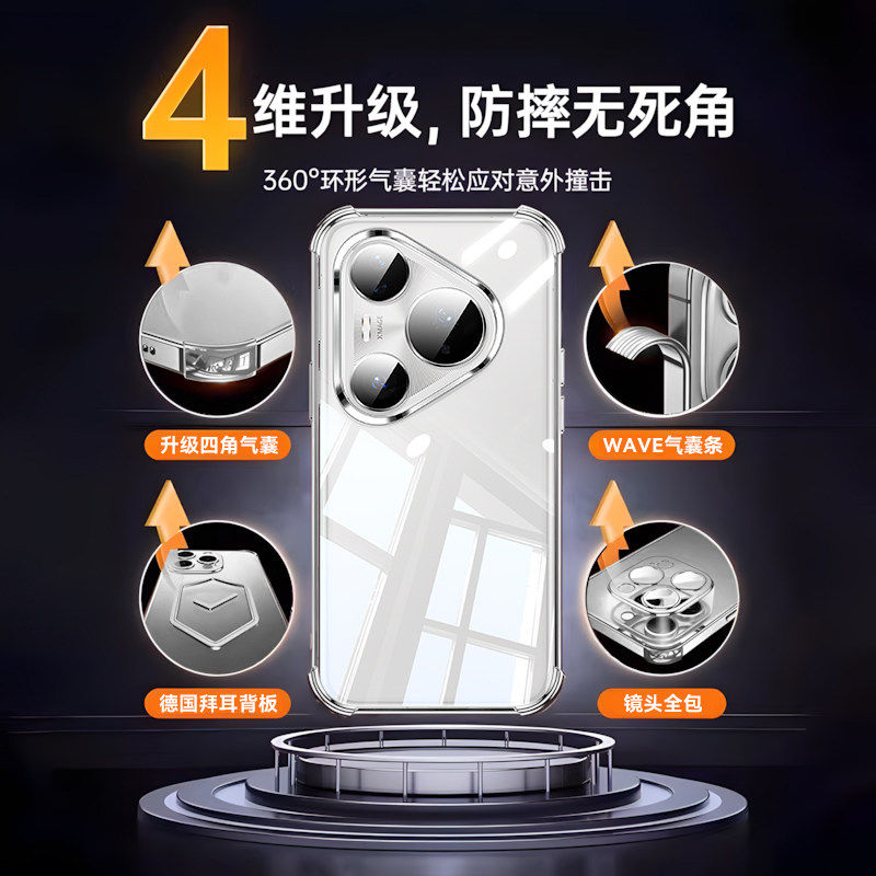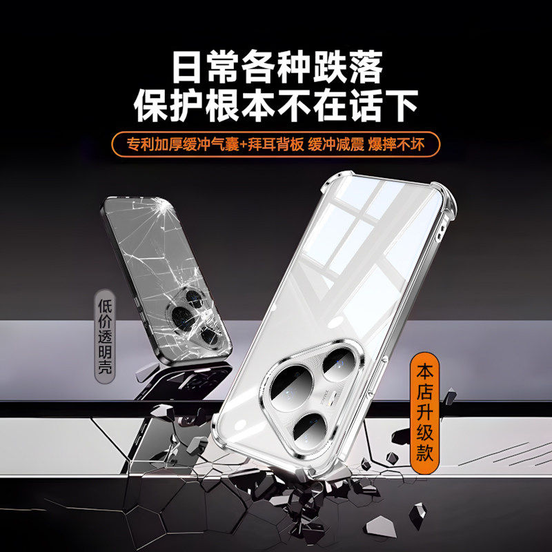 【德国进口】适用华为pura80pro手机壳透明Pura80Pro+保护套电镀气囊p80ultra防摔p80带镜头膜p70pro硅胶高级