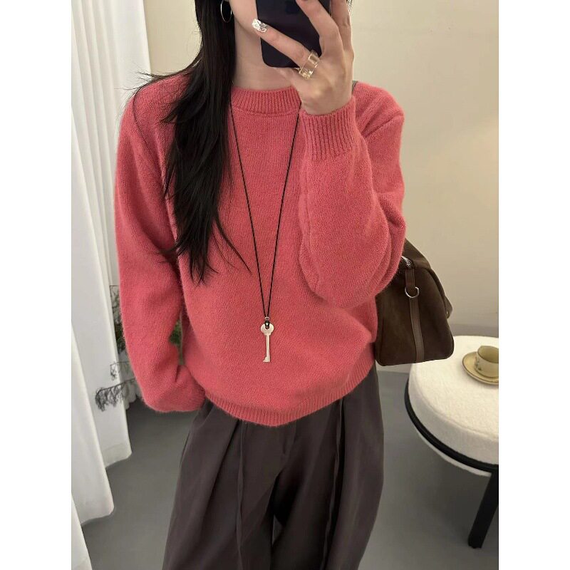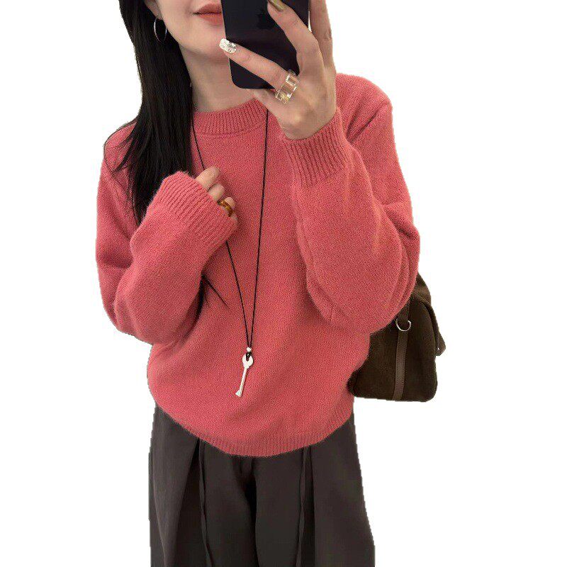 冬季女士拼色加厚圆领毛衣女款2025新款秋冬爆款内搭可外穿打底衫