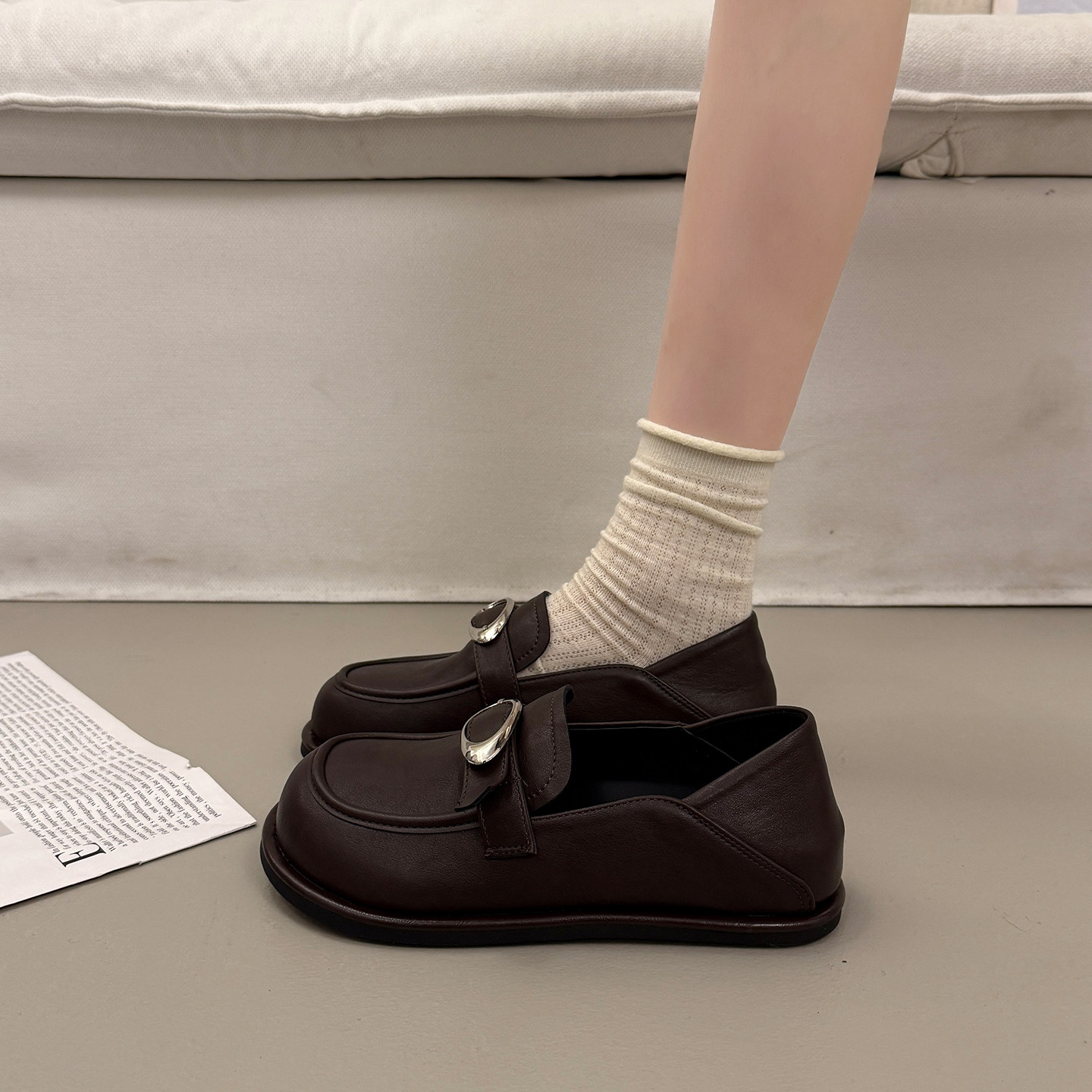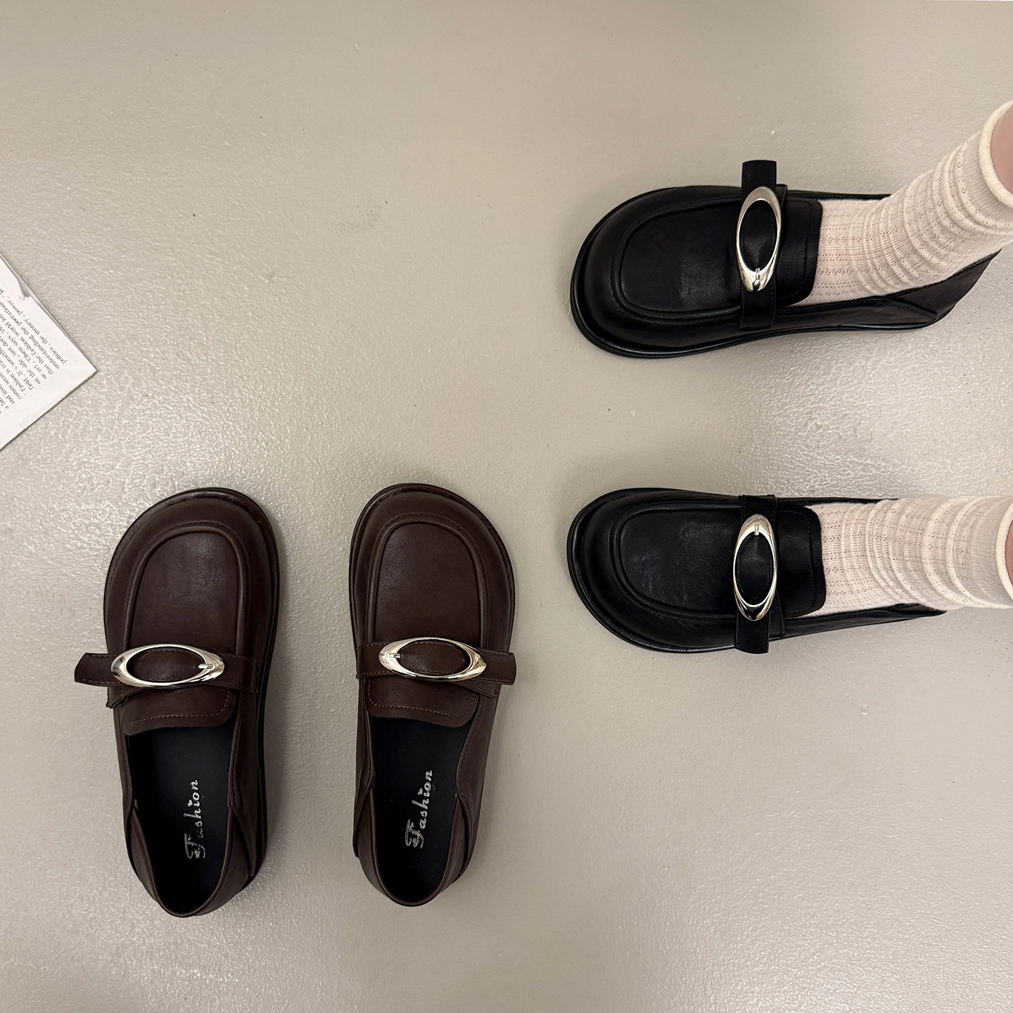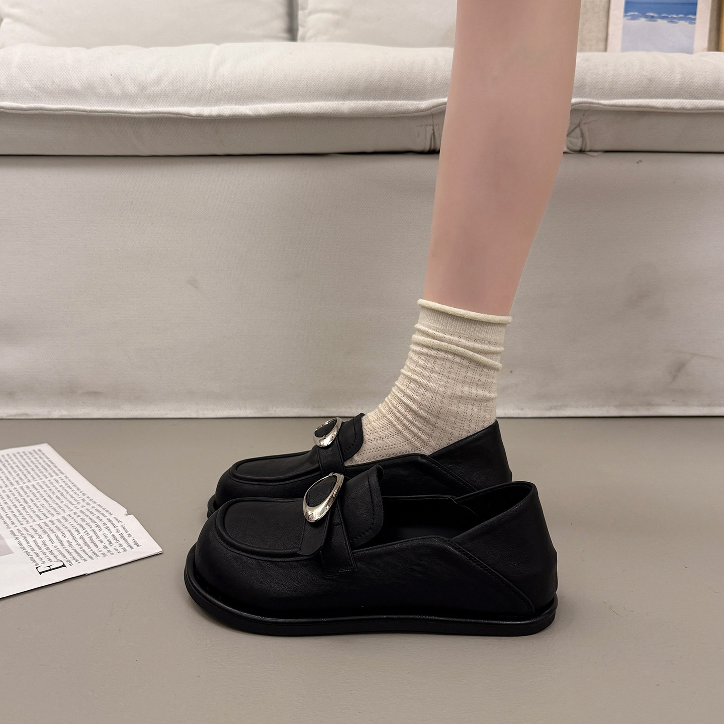 黑色小皮鞋女平底内增高气质单鞋2026新款春季一脚蹬乐福玛丽珍鞋