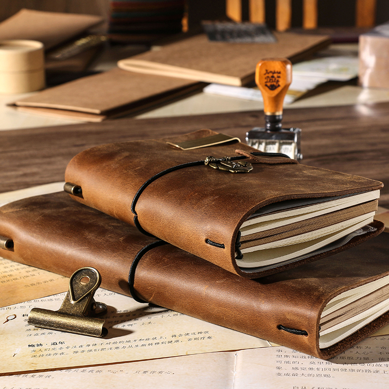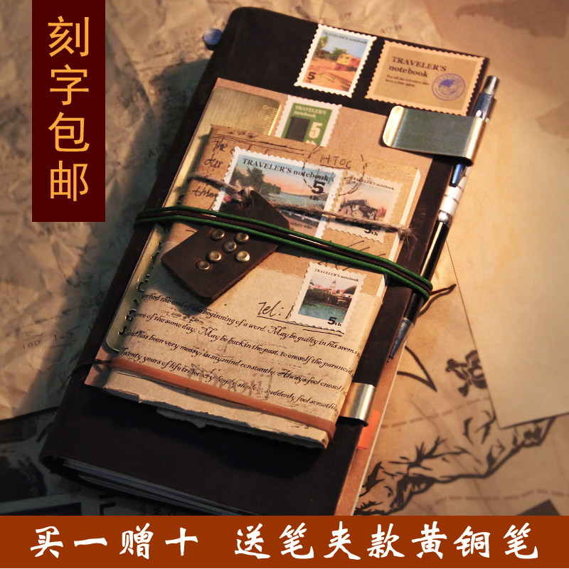 TN真皮旅行记事本手账本 手工牛皮本复古笔记本活页日记 刻字定制