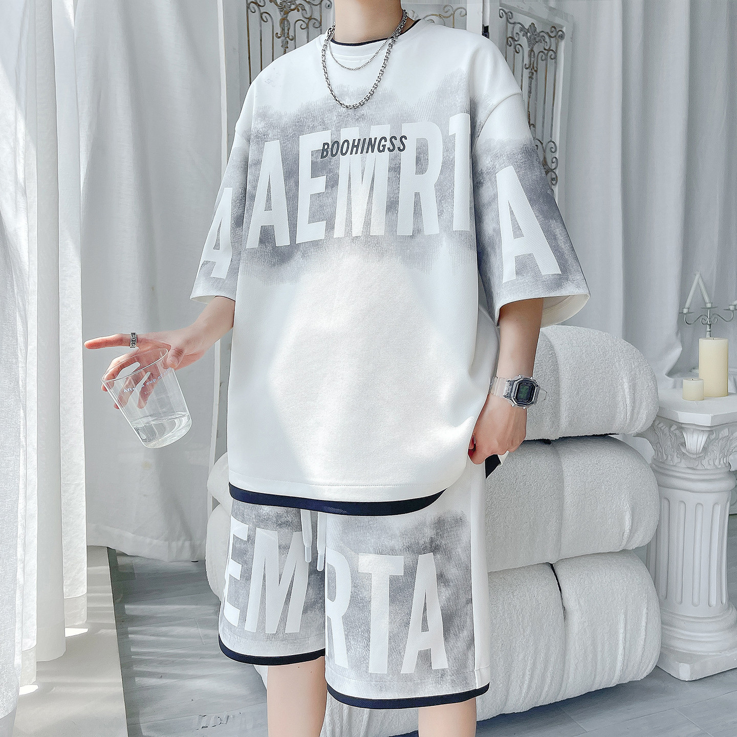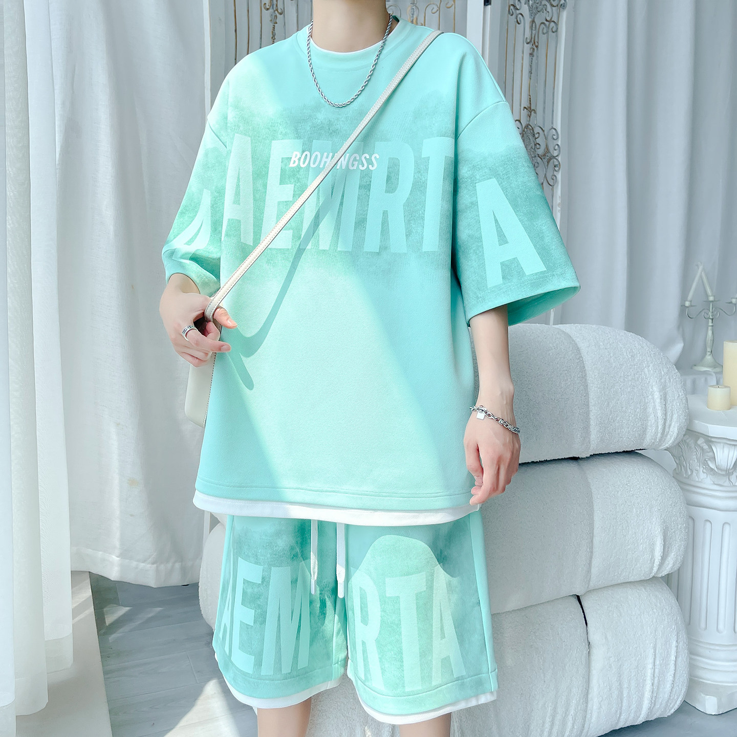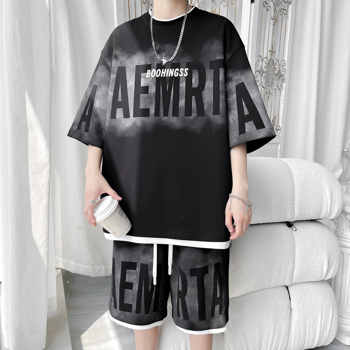2026新款短袖T恤男运动套装夏季青少年学生潮流帅气男装搭配一套