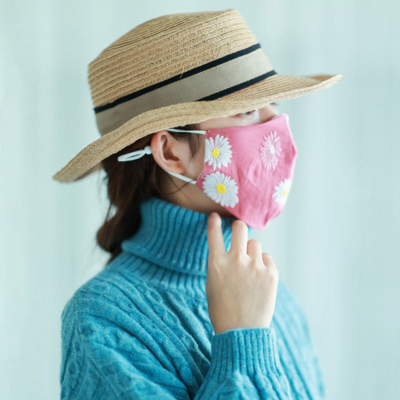 忆旧棉麻面罩防尘防晒四季可带苎麻亚麻纯棉刺绣口罩防风保暖秋冬
