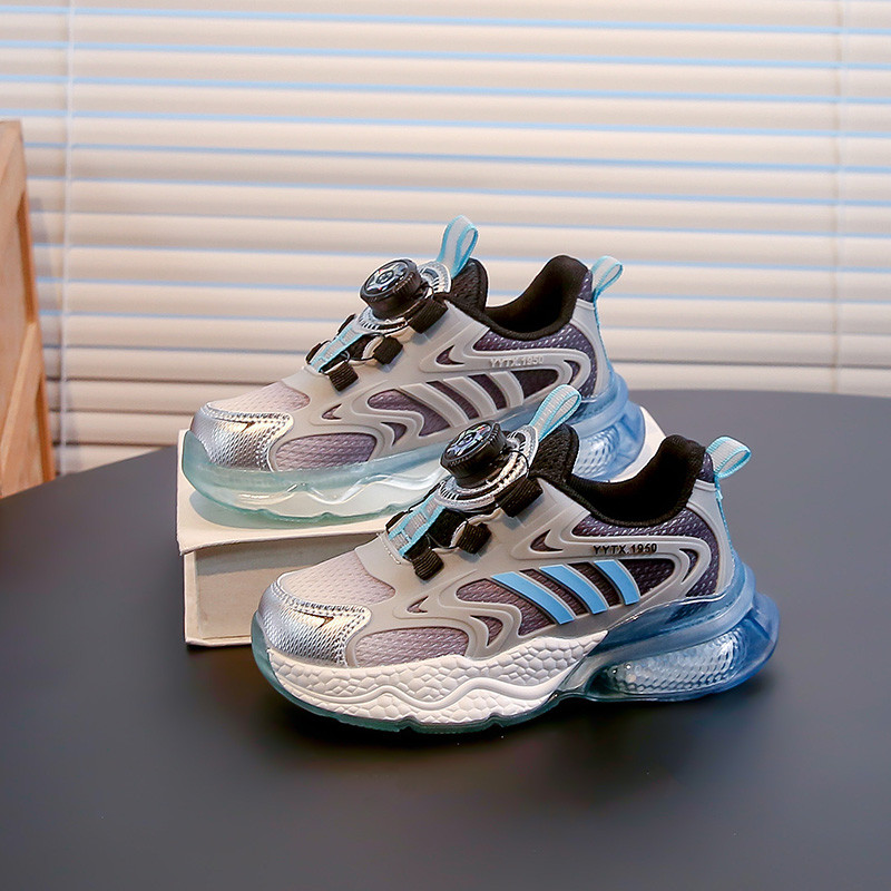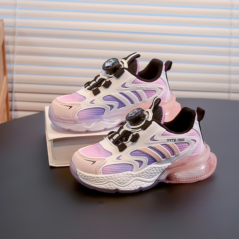 品牌儿童运动鞋女童鞋子夏季网面透气轻便减震旋纽扣男小孩跑步鞋