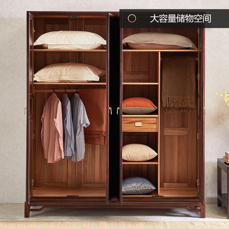 乌金衣柜定制全实木整体衣柜卧室四门推拉门衣柜新中式家具定制