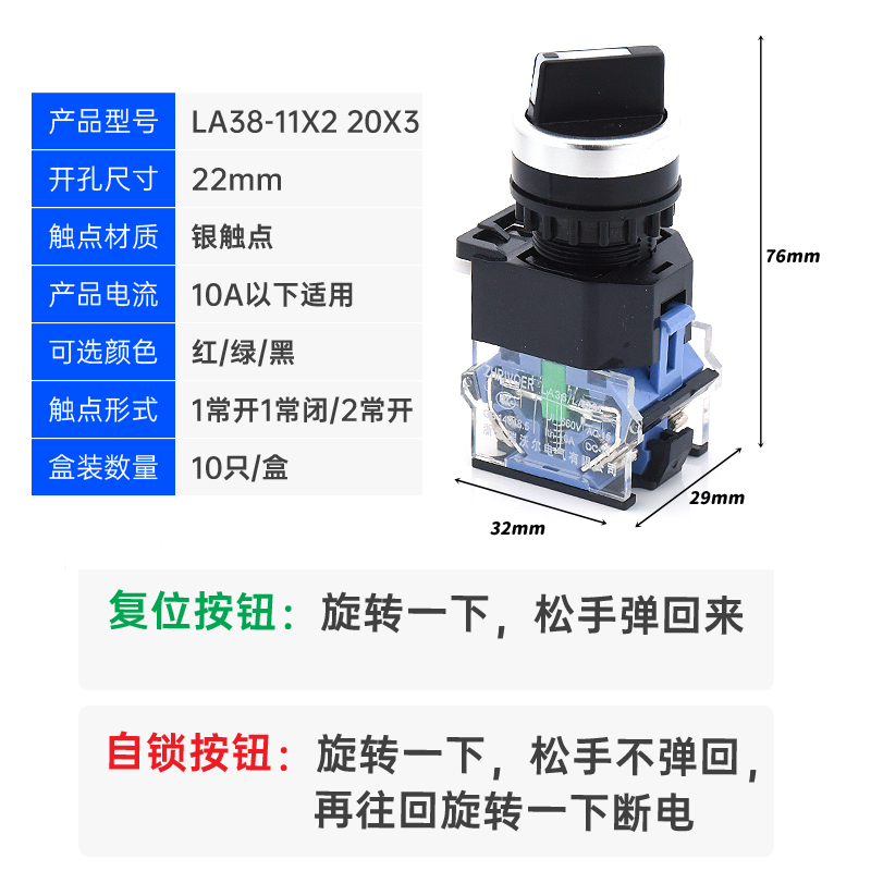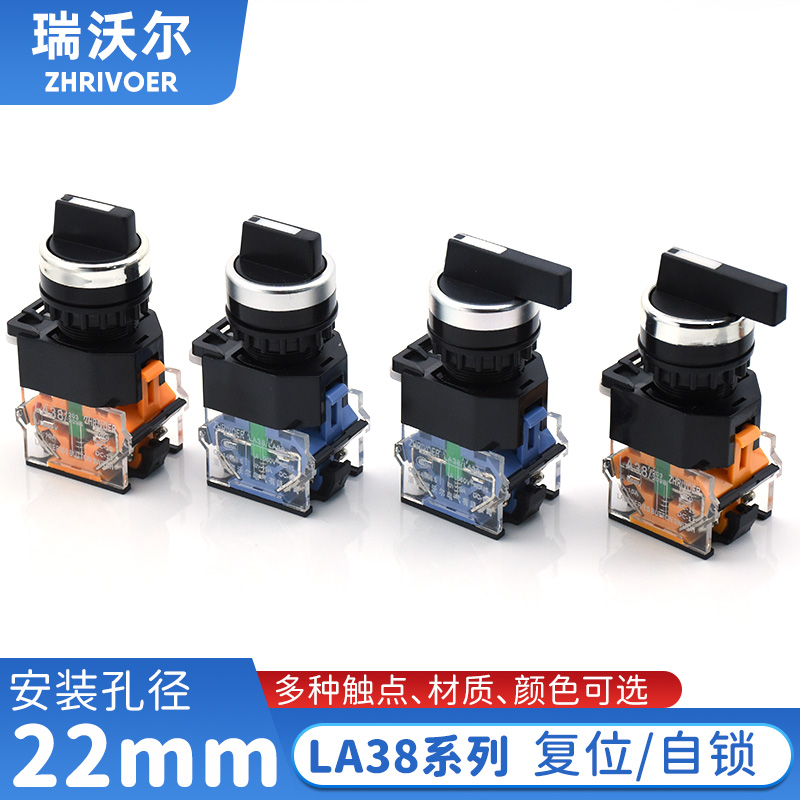 22mm瑞沃尔选择旋转换按钮开关LA38-11X2 20X3两三档自锁复位旋钮