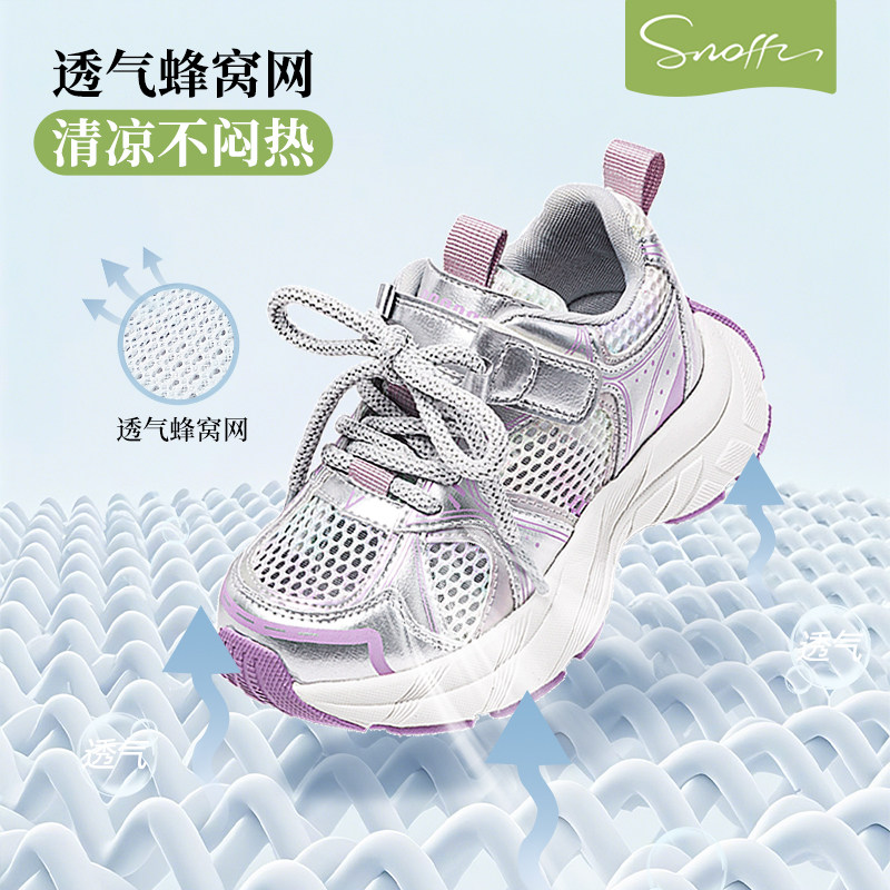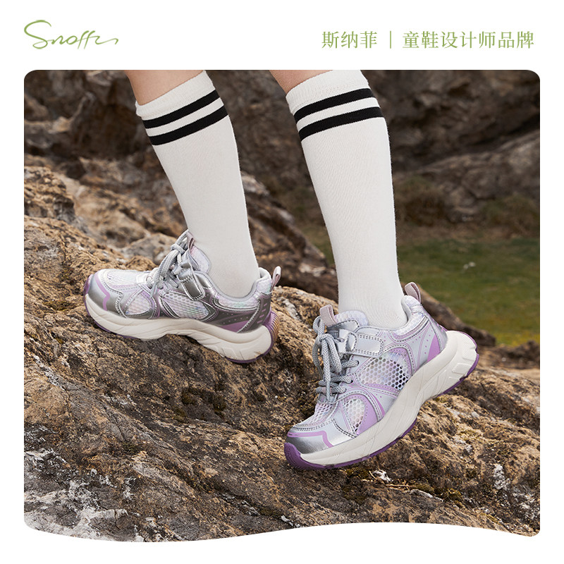 斯纳菲女童老爹鞋2026年春夏休闲鞋新款户外防滑网面透气运动凉鞋