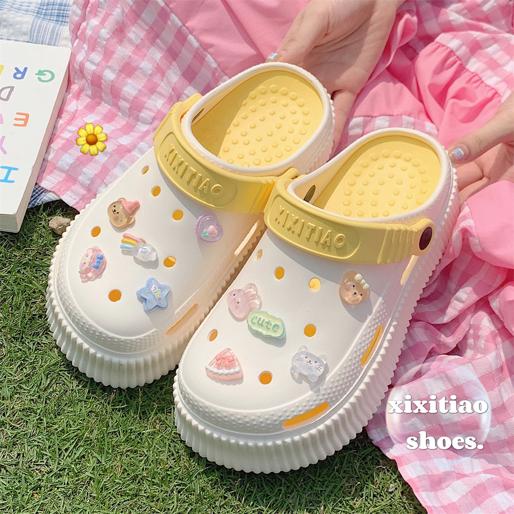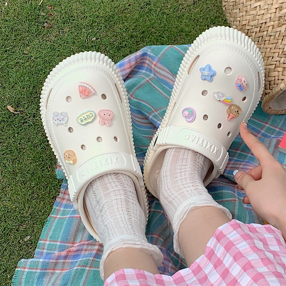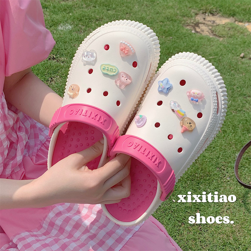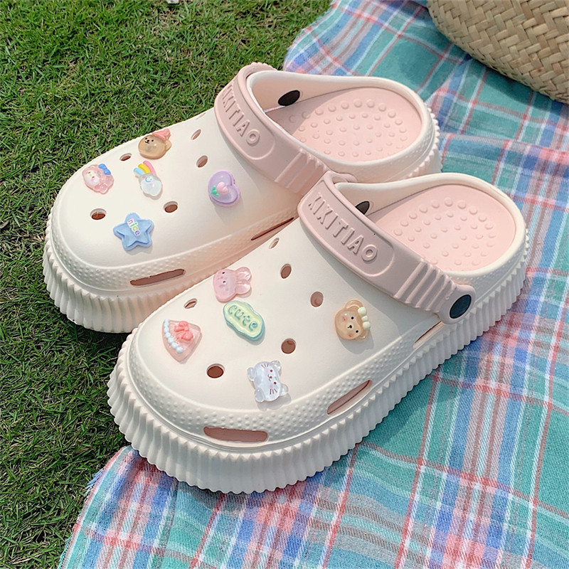 细细条 海边度假沙滩凉拖鞋女增高厚底可爱小熊小兔夏季EVA洞洞鞋