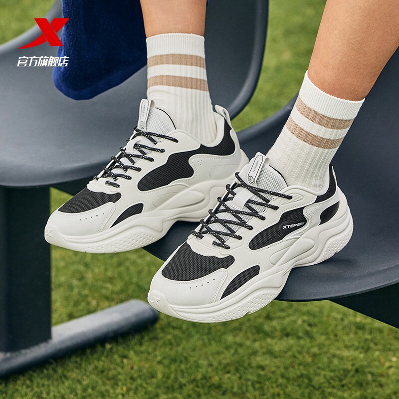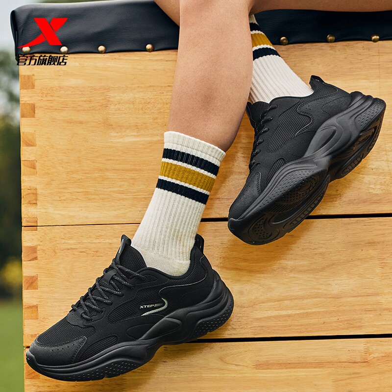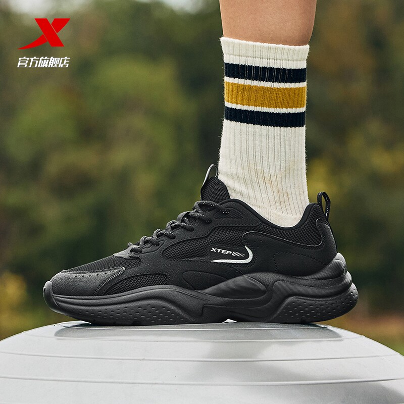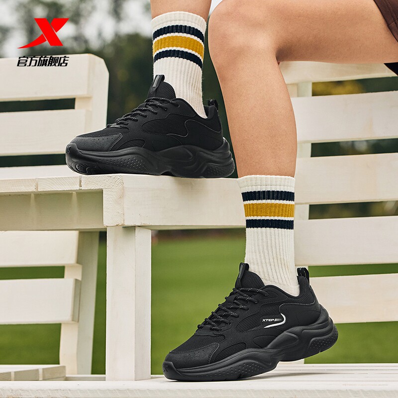 特步女鞋春季2026新款网面透气厚底增高老爹鞋轻便减震跑步运动鞋