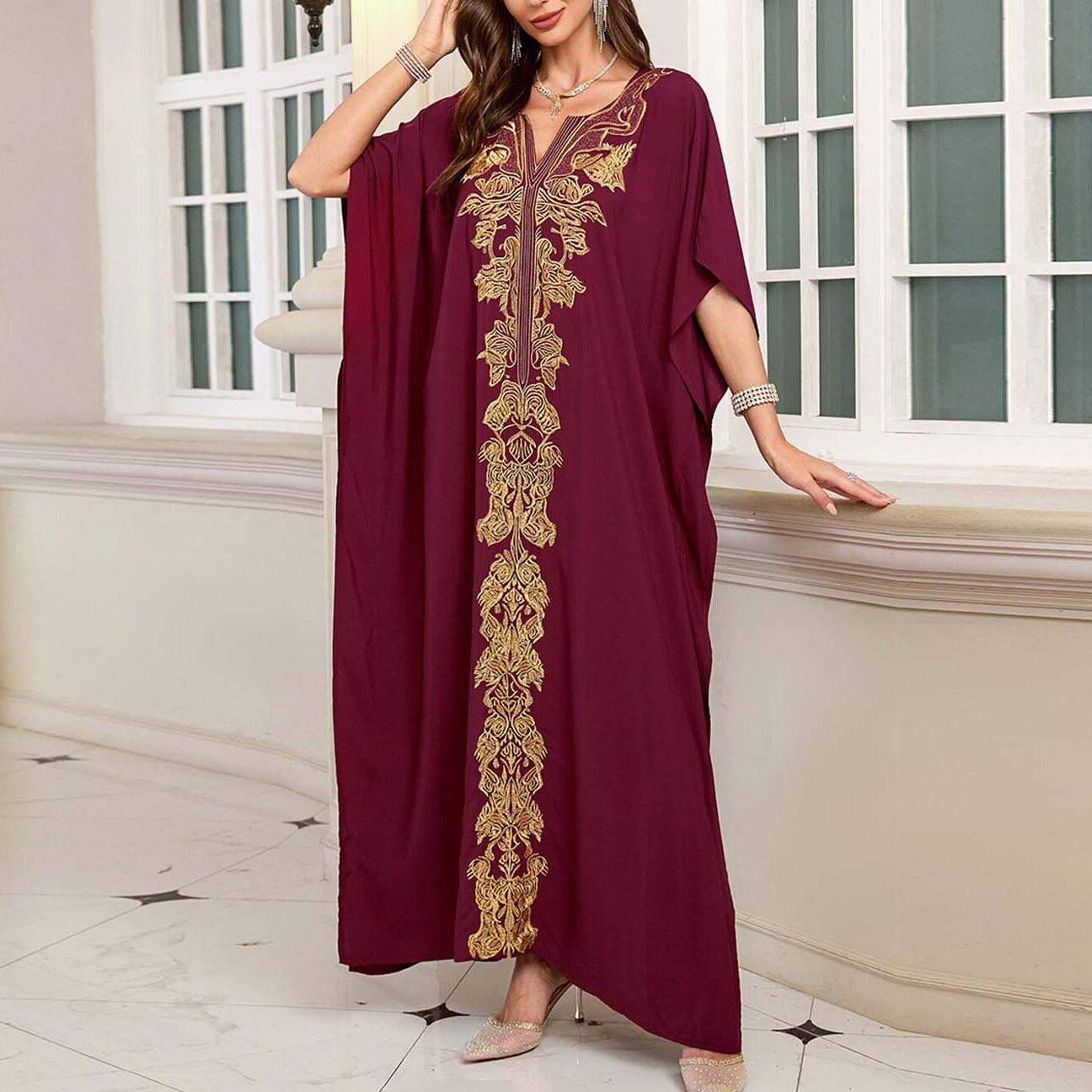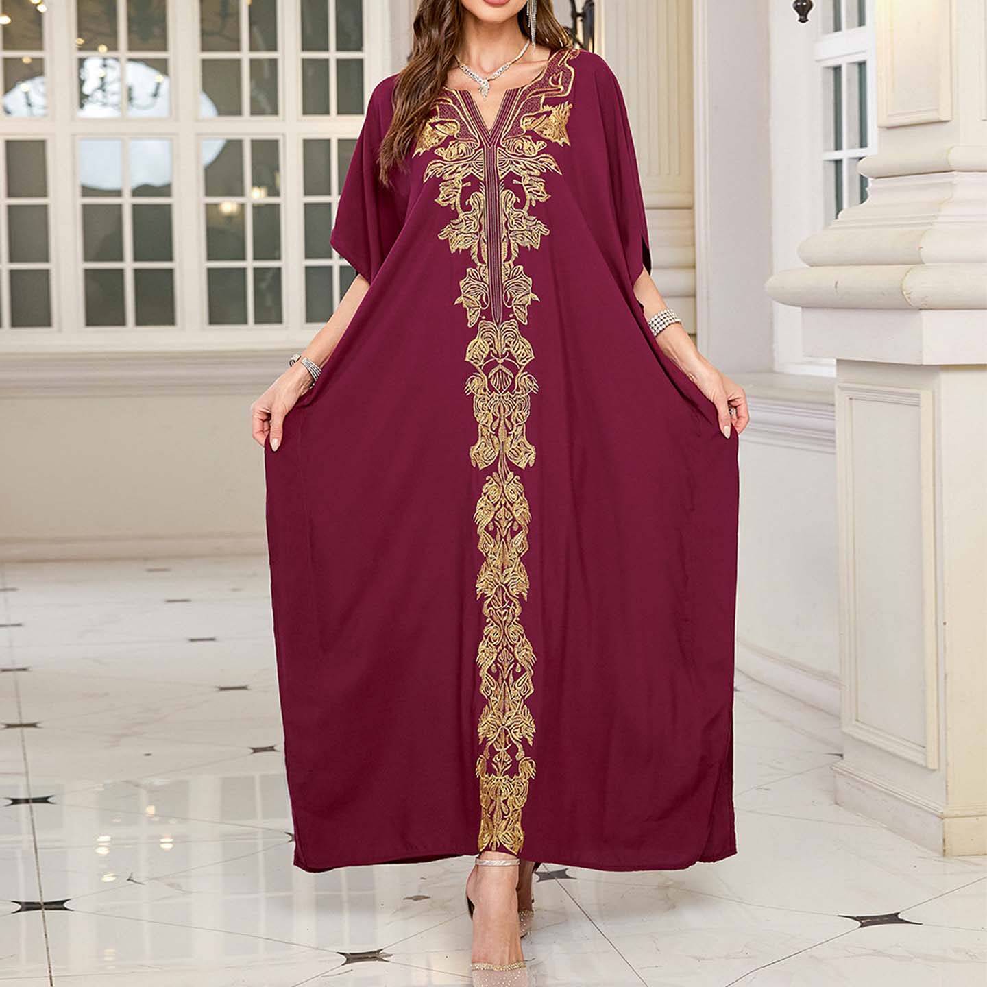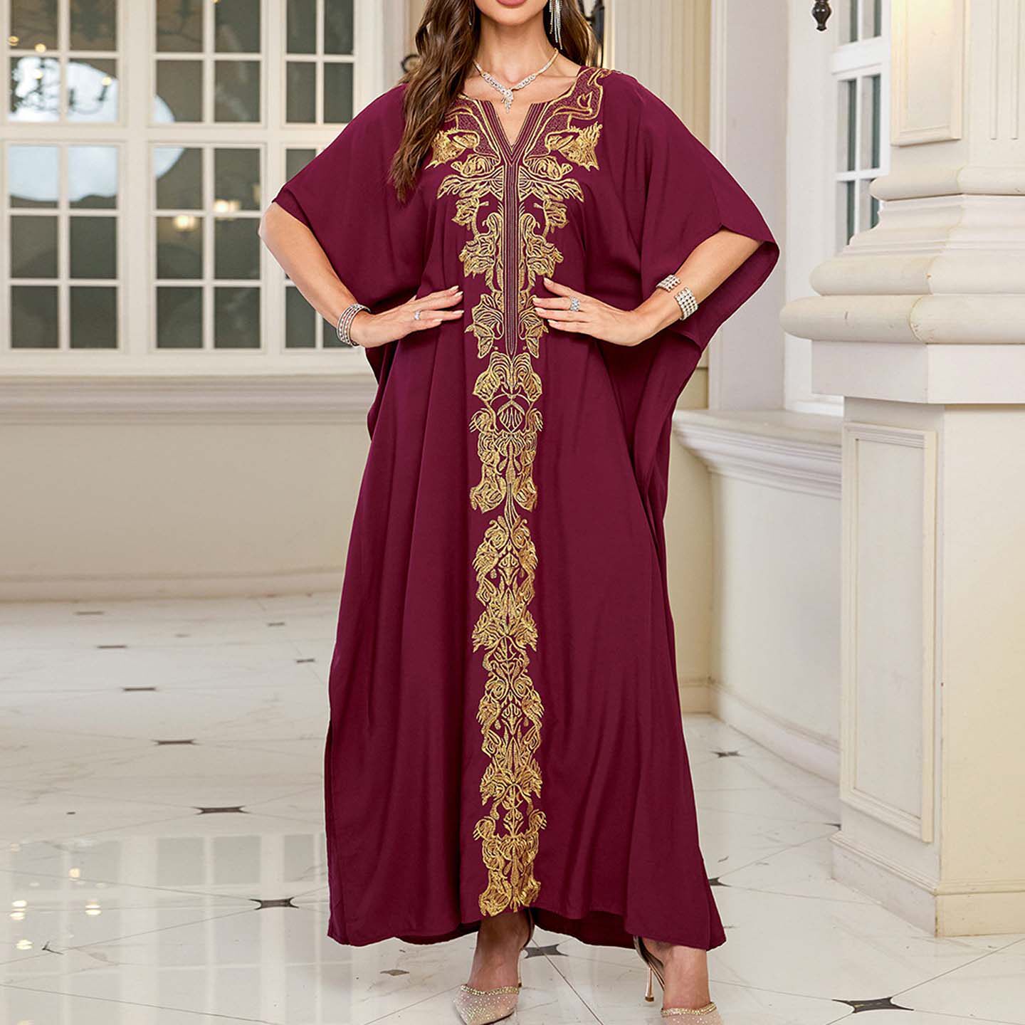 夏季新款高级感金色刺绣连衣裙女微胖遮肉海岛海边度假沙滩长裙子