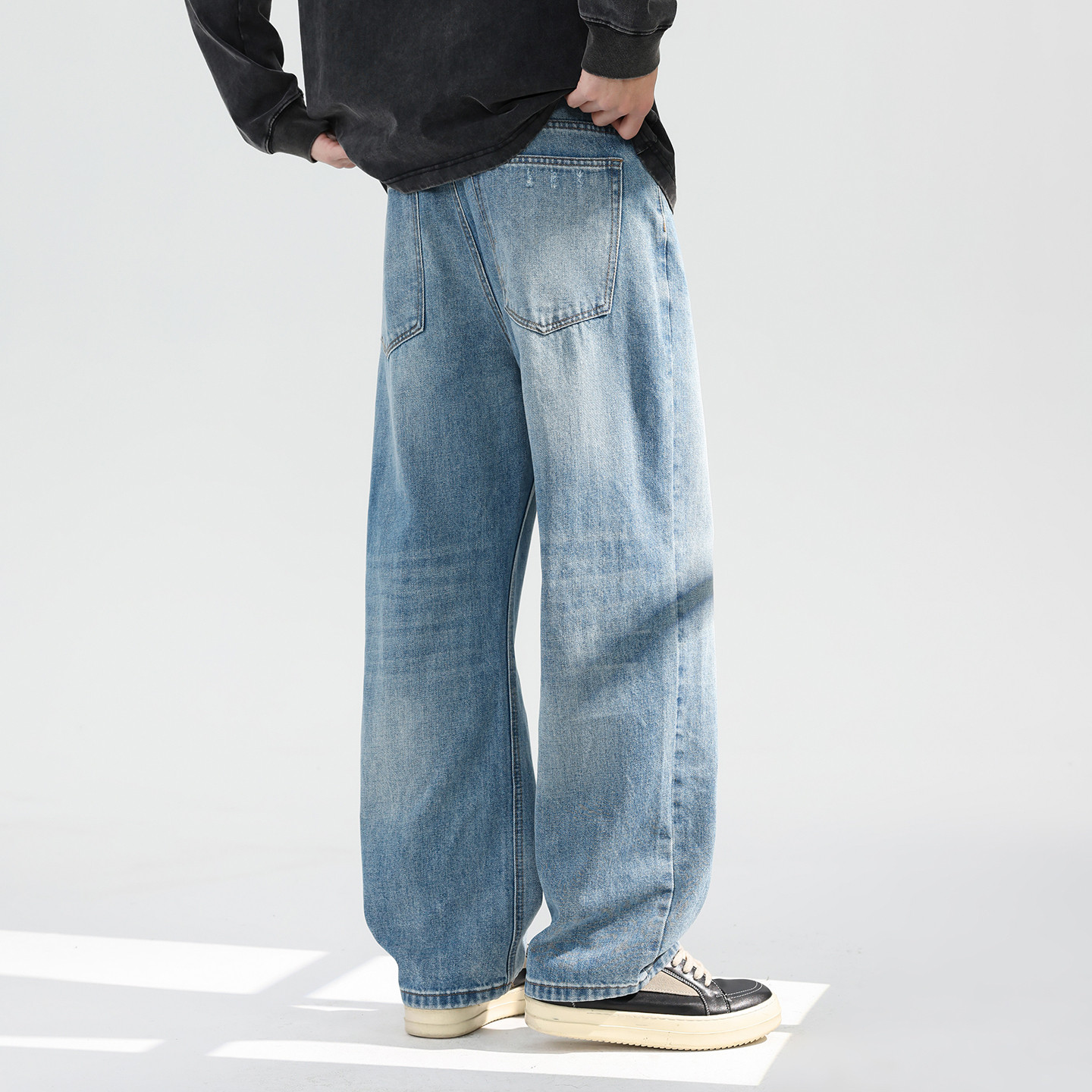 男士水洗宽松牛仔裤男款直筒美式高街春季长裤休闲裤2026年新款