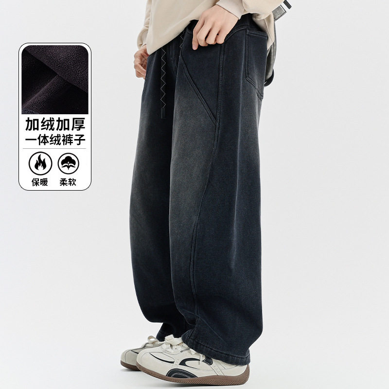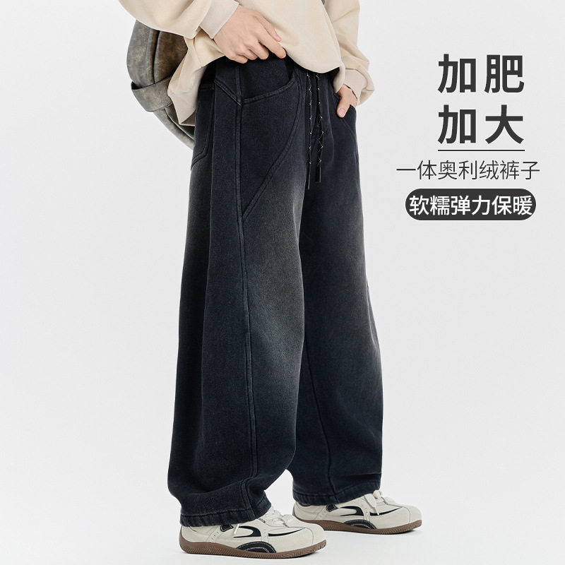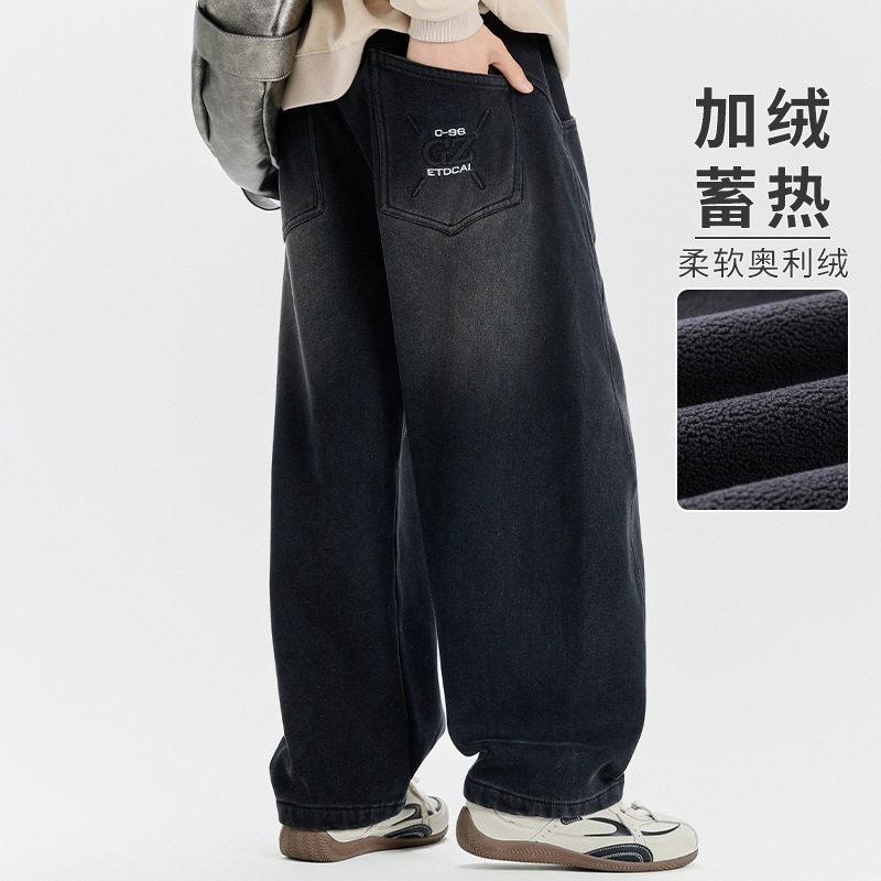 胖童装男童牛仔裤加绒加厚青少年儿童加肥加大休闲裤冬装男孩裤子