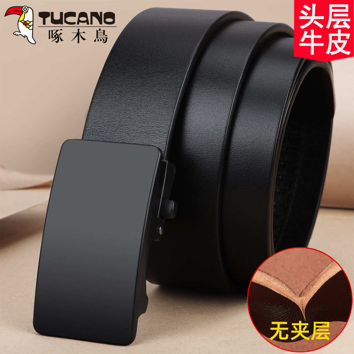 啄木鸟纯头层牛皮男士皮带真皮年轻人百搭自动扣韩版简约正品腰带