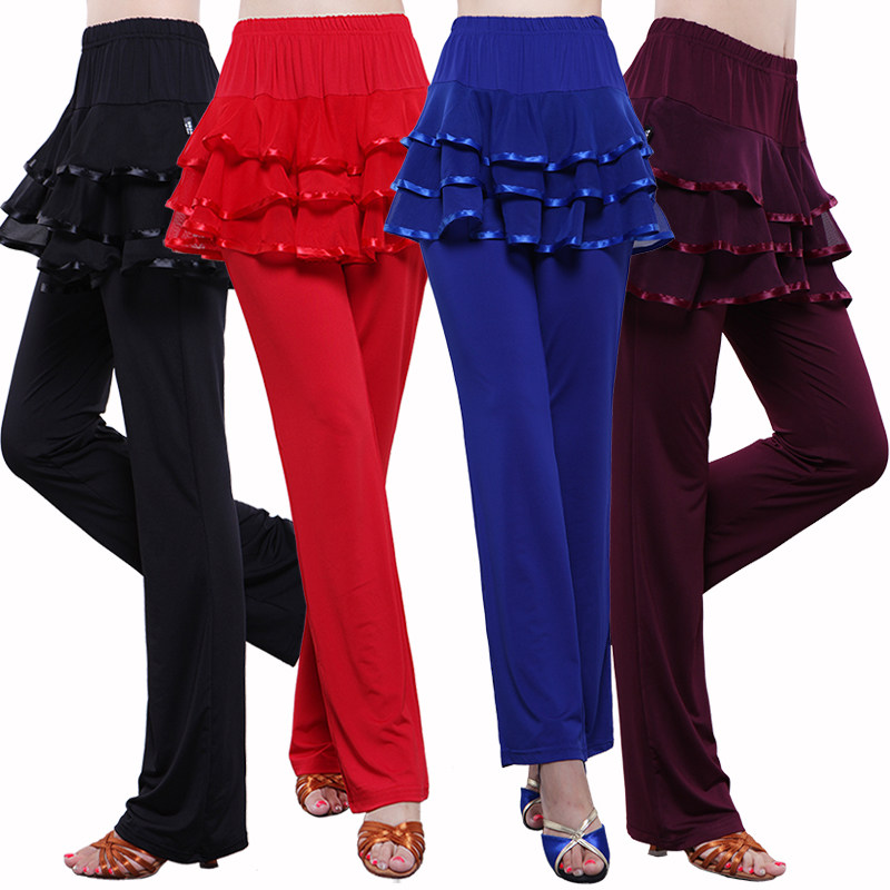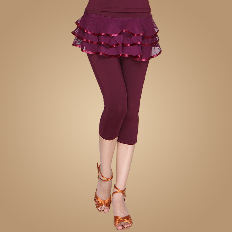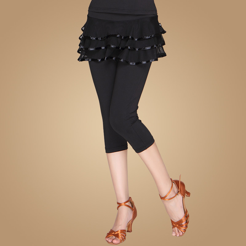 新款广场舞服装夏季裤子女成人拉丁舞蹈七分裙裤网纱跳舞练功裤裙