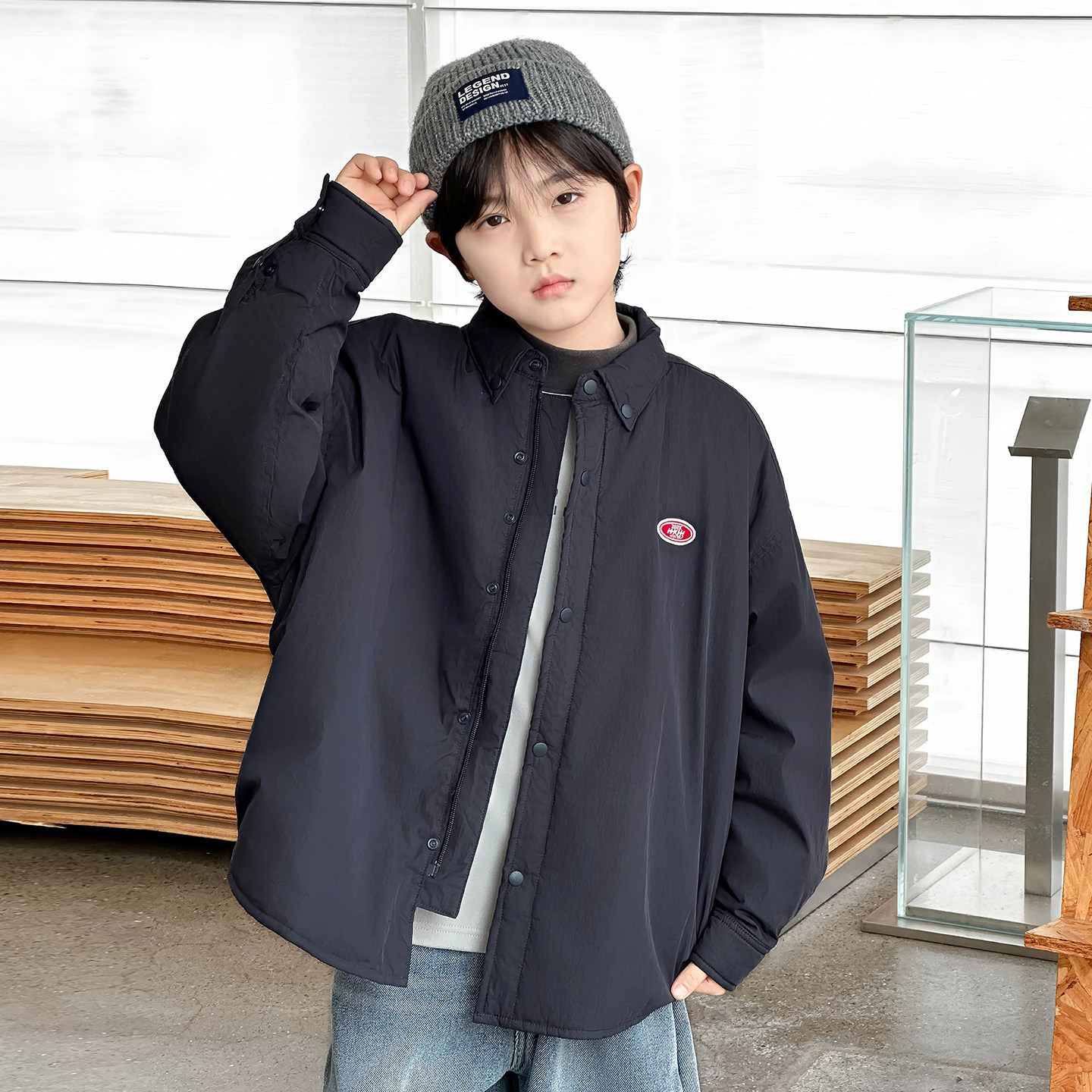soulstyle儿童秋装外套男女款新款保暖棉衣中大童装秋季夹棉衬衫