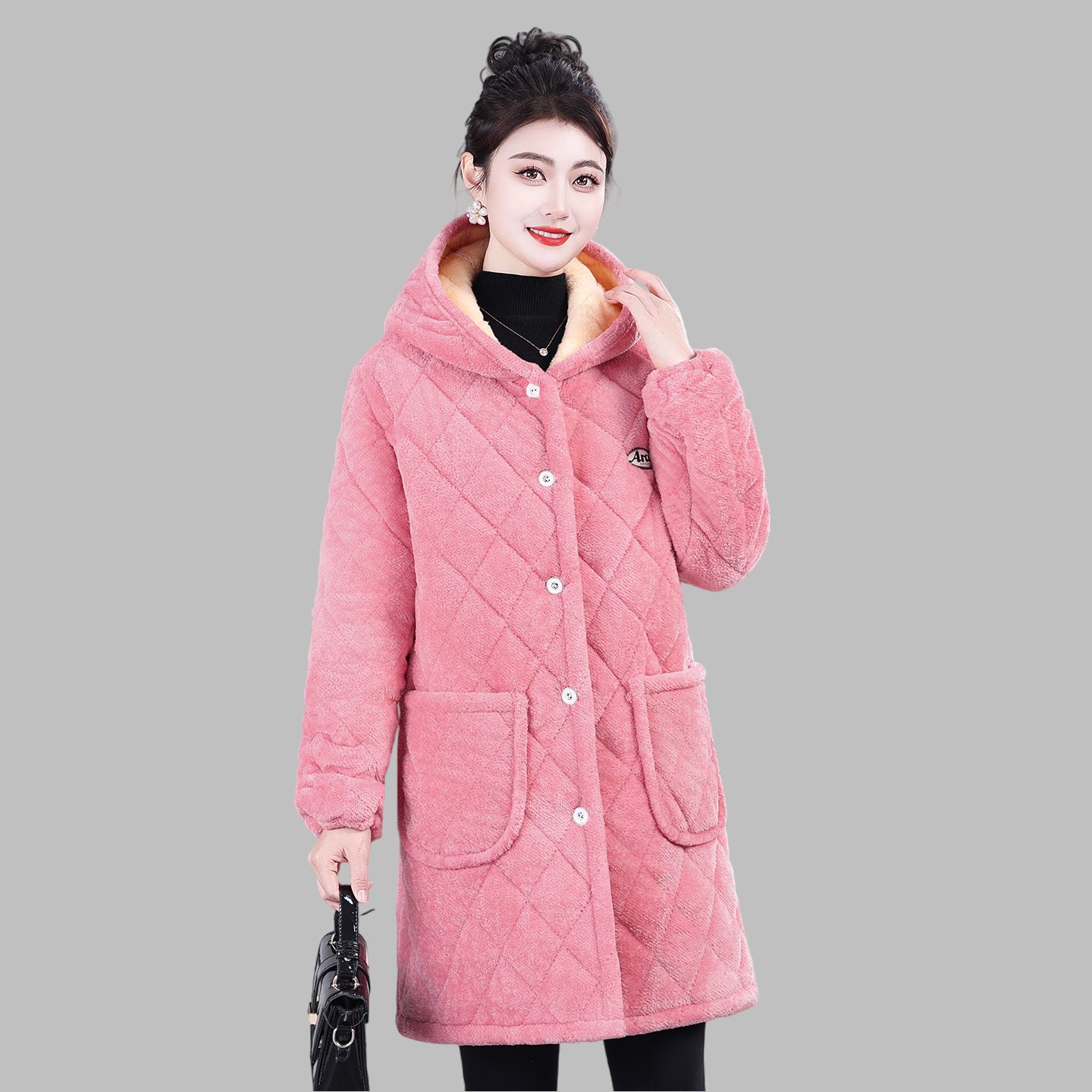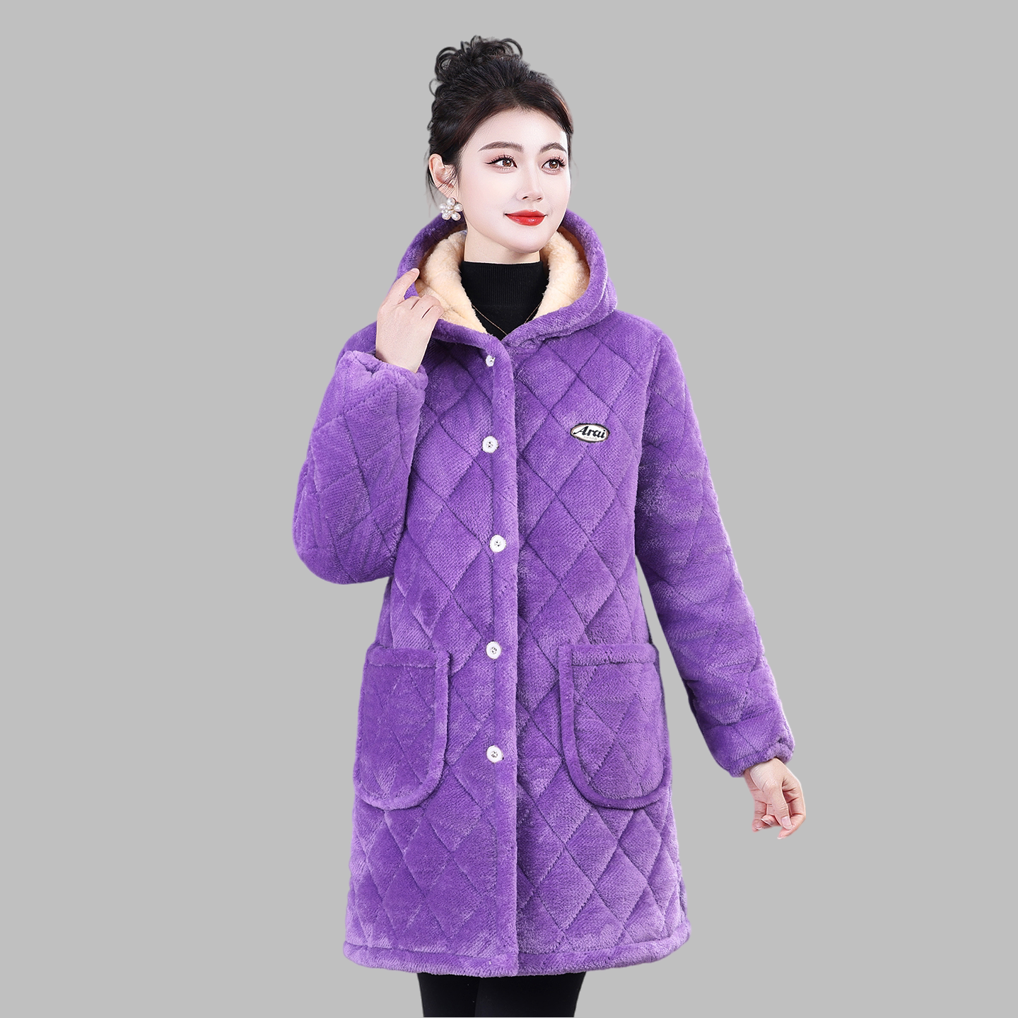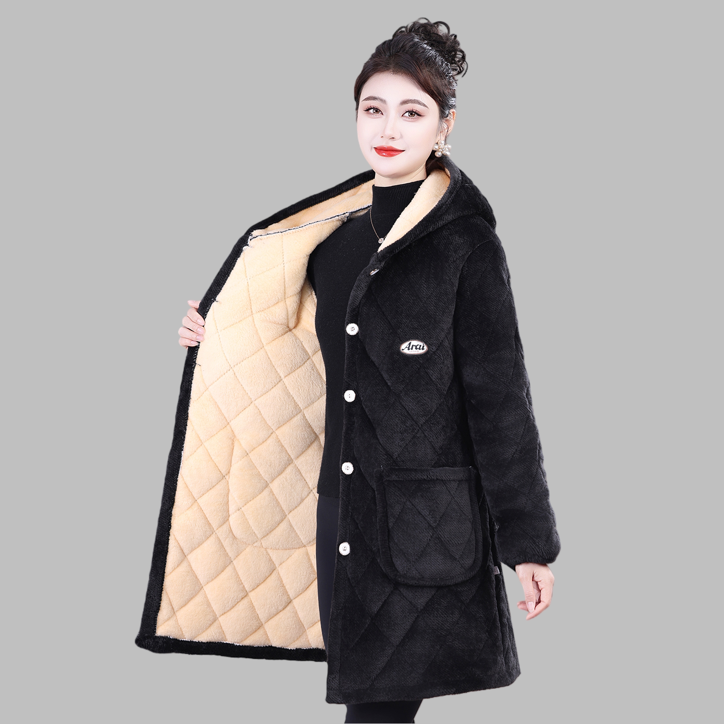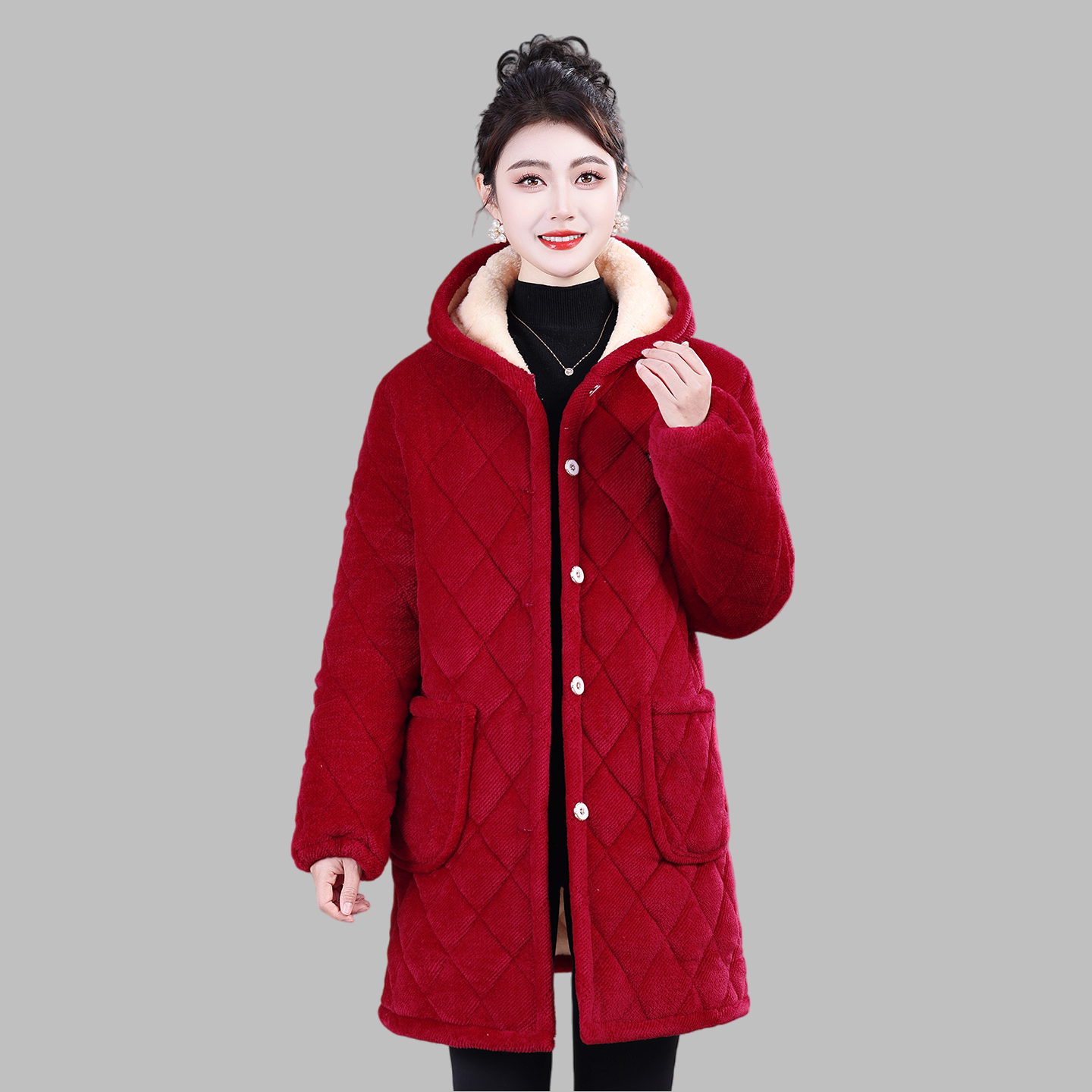 女士冬季新款加绒加厚保暖罩衣外套妈妈装中长款棉服棉衣四川省服