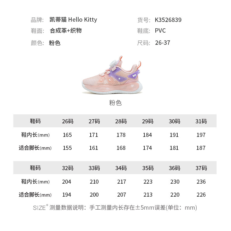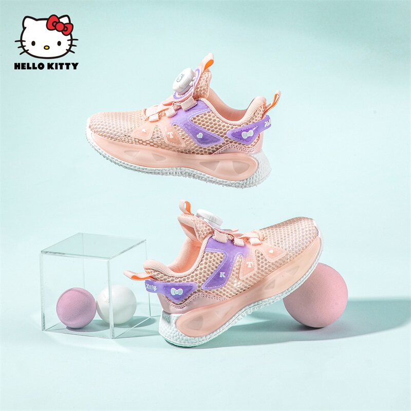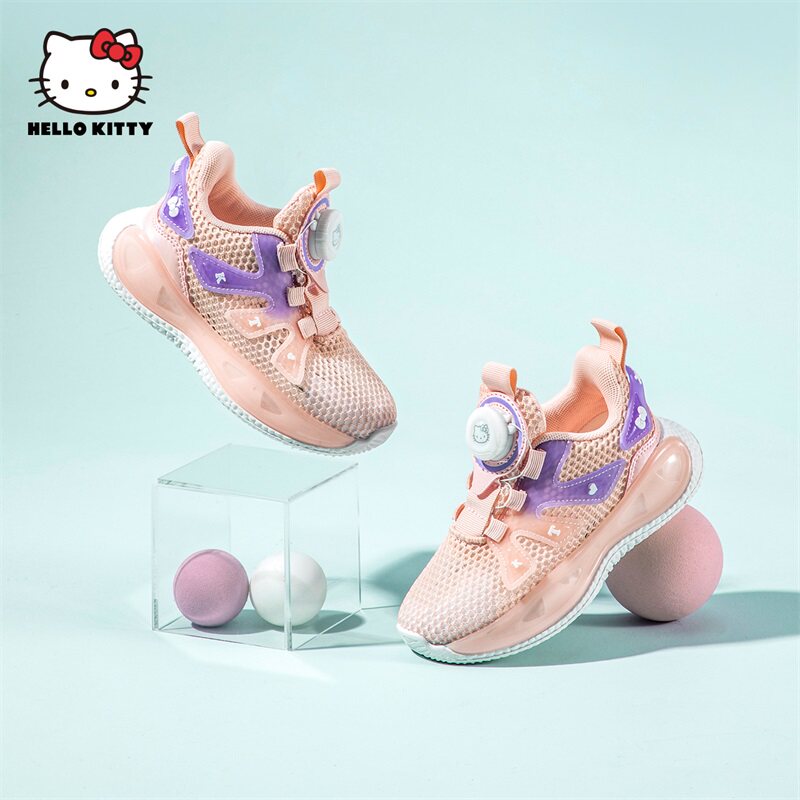 HelloKitty童鞋女童夏季运动鞋网面透气轻便纽扣旋转大童休闲鞋