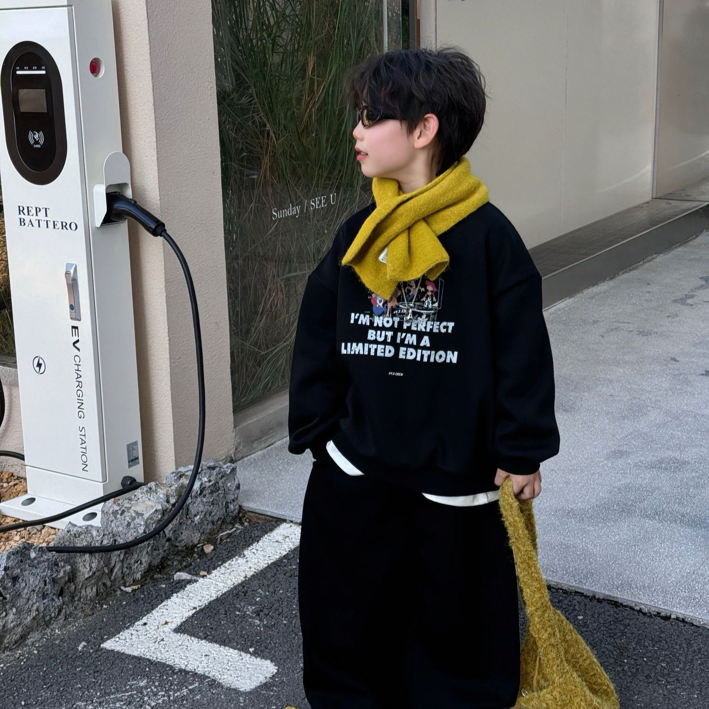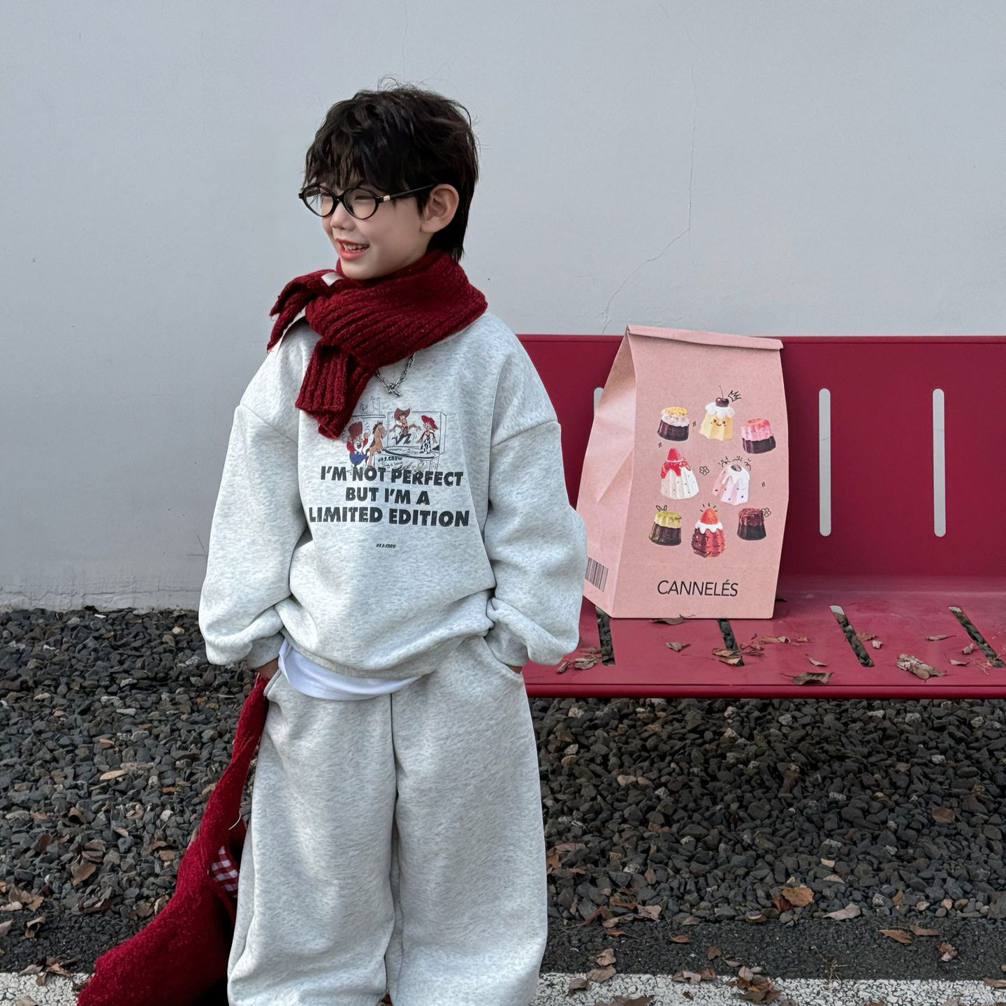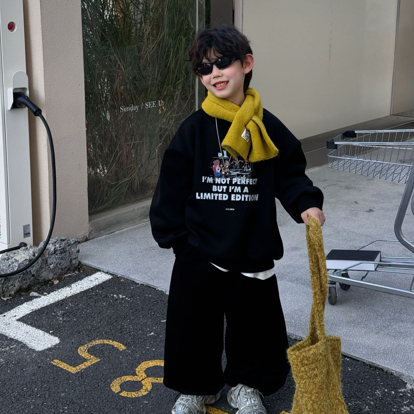小杰家2025冬季新款男童字母运动风时尚套装中大童加绒上衣长裤