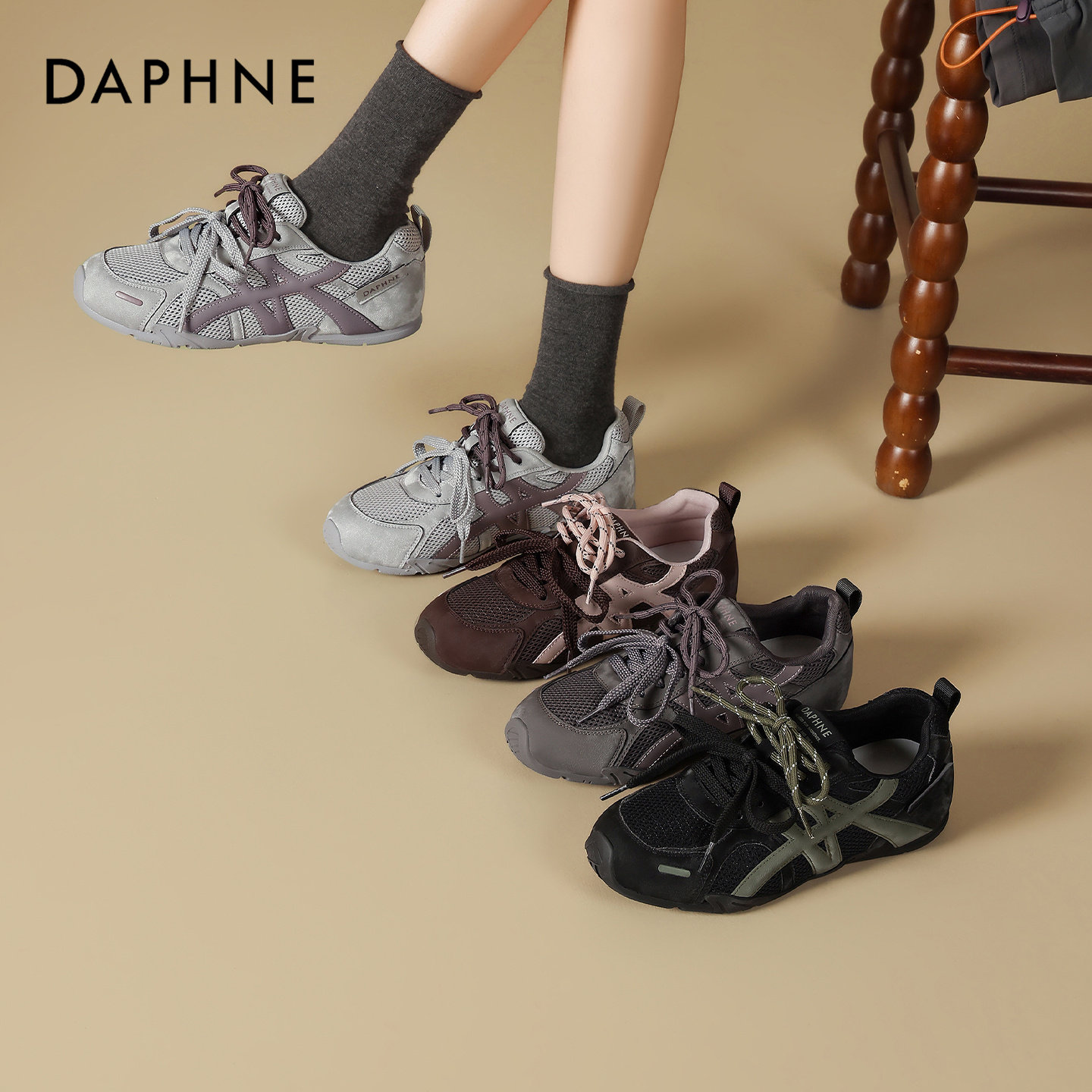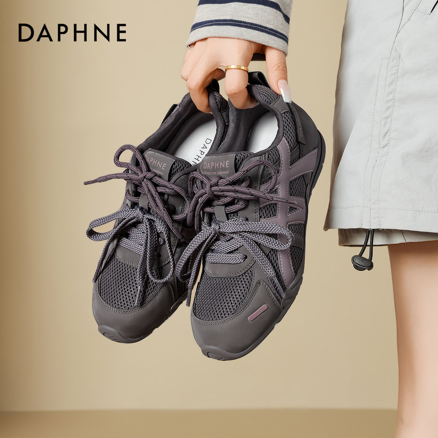 达芙妮德训鞋女鞋2026新款夏季网面透气软底不累脚百搭休闲运动鞋