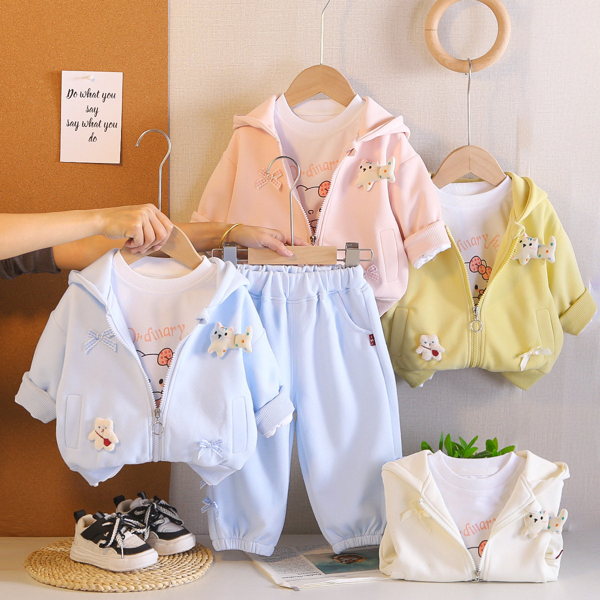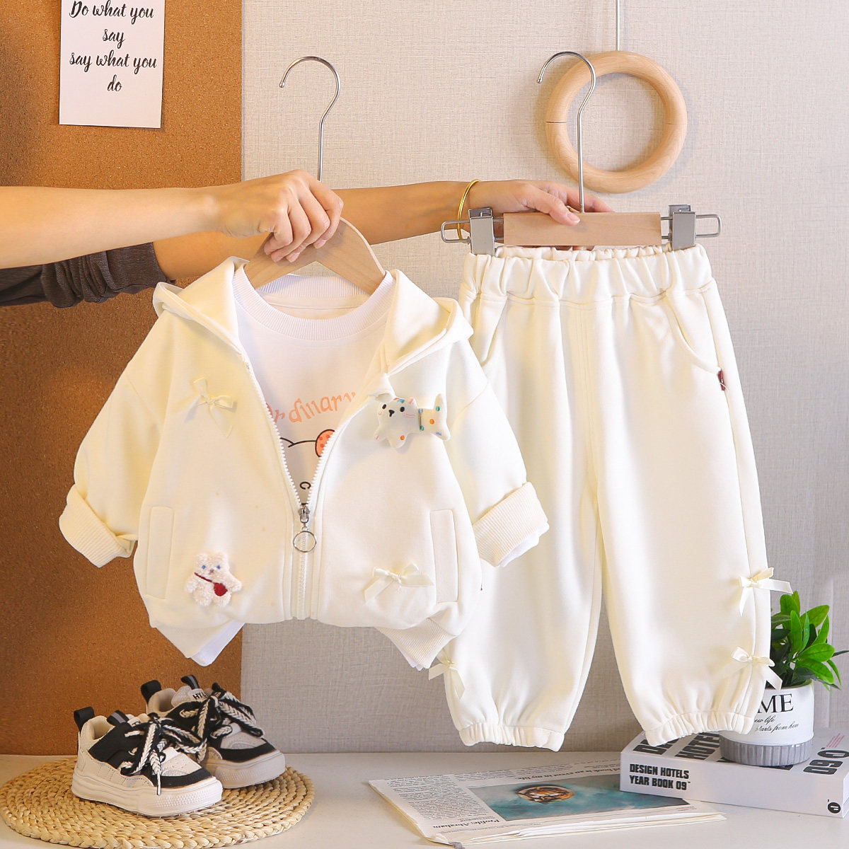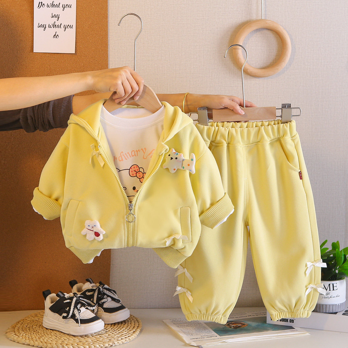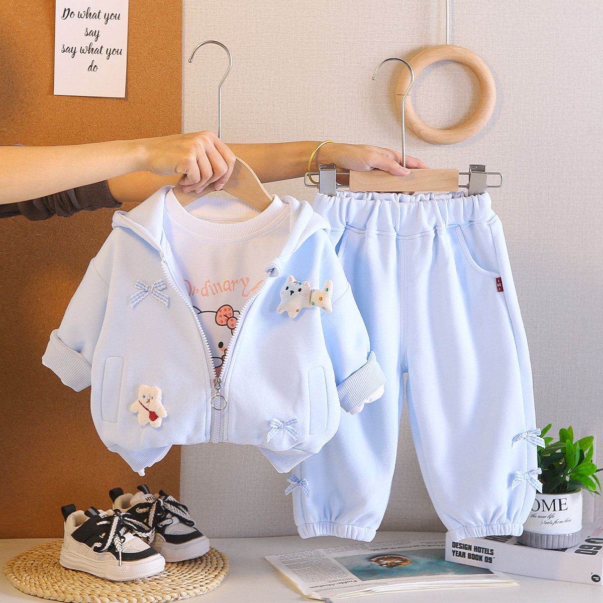 女童卫衣套装春秋款2026新款儿童洋气时髦宝宝休闲春装开衫三件套