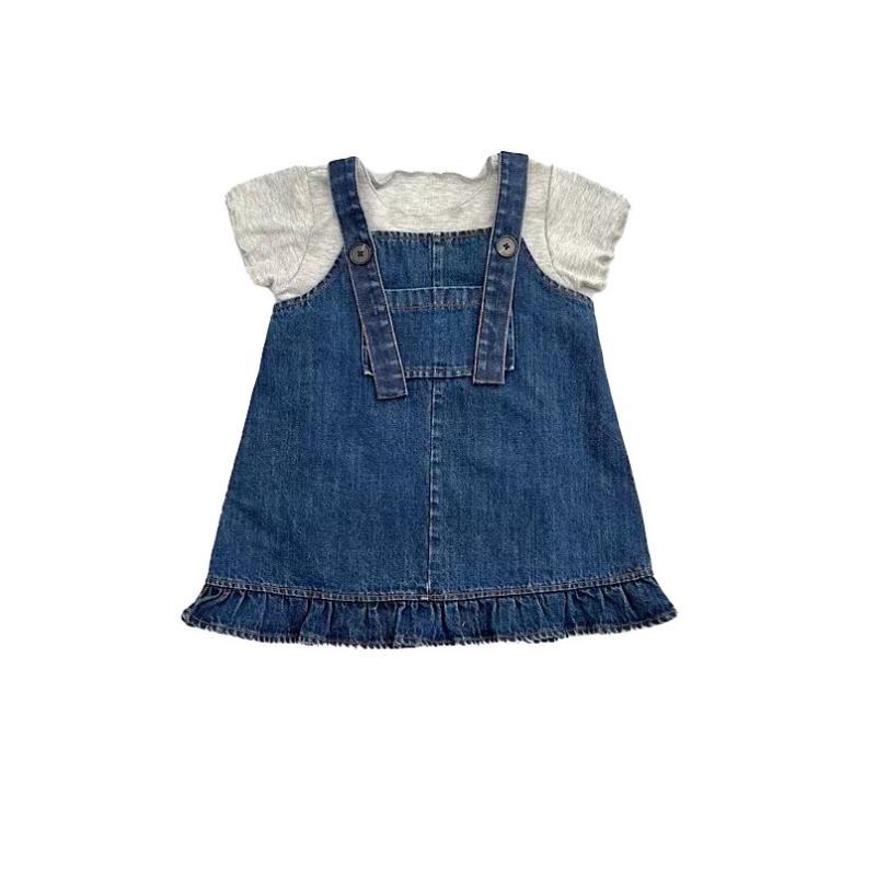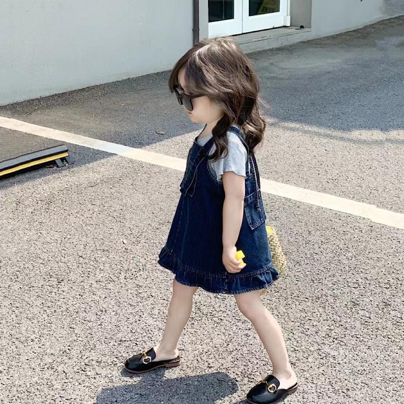 女童时髦套装2023连衣裙子儿童春夏牛仔背带裙宝宝洋气短袖两件套