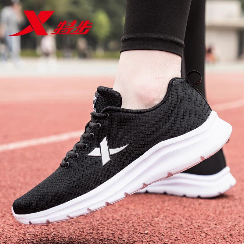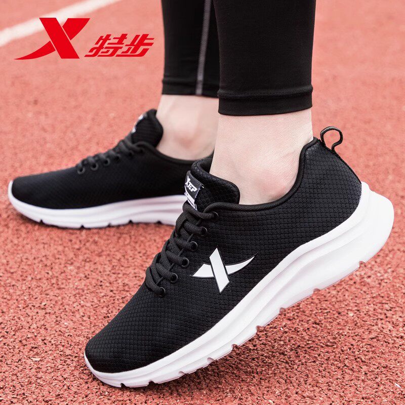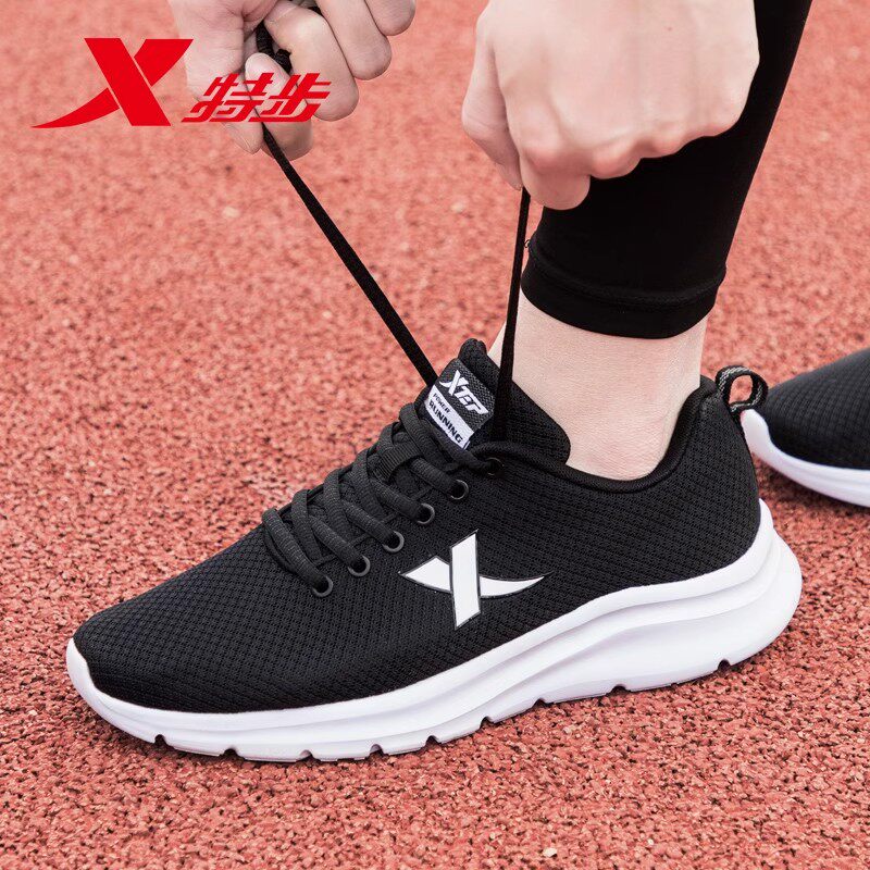 特步男鞋跑步鞋春季网面透气网鞋官方正品鞋子男士黑白休闲运动鞋
