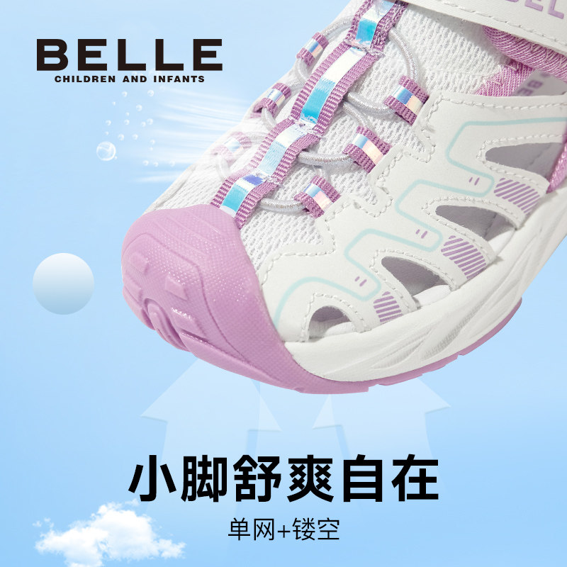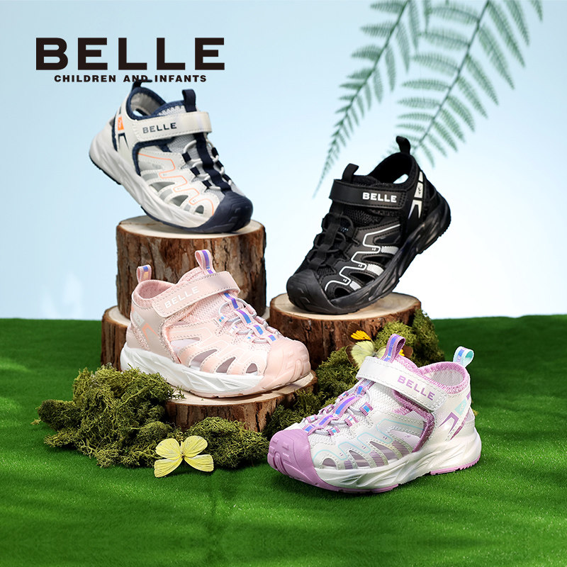 百丽童鞋时尚百搭沙滩鞋夏季舒适透气凉鞋男女童运动风包头溯溪鞋