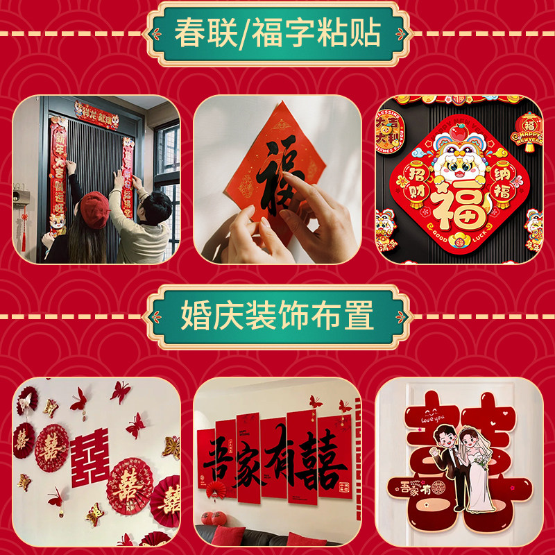 结婚婚房布置不伤墙无痕胶网格双面胶高粘度不留痕贴墙专用强力胶贴对联春联专用胶贴地毯墙布无痕贴双面胶