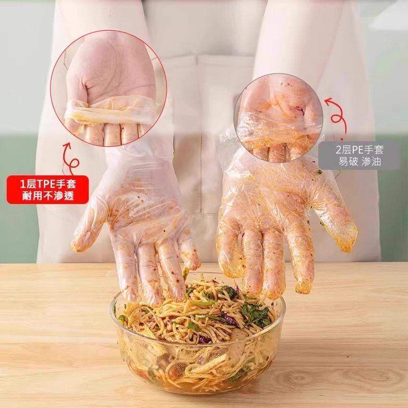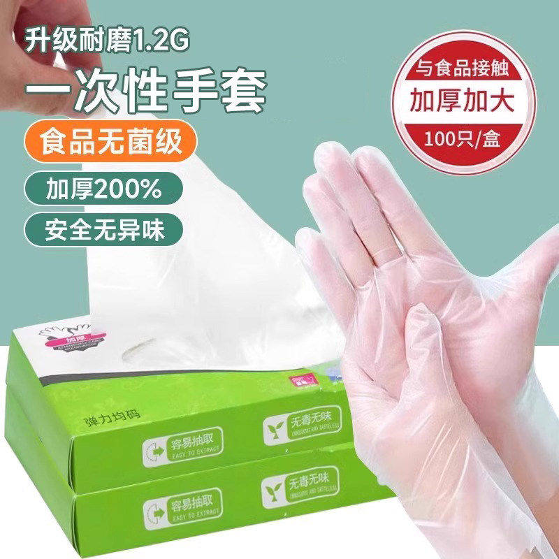 200只加厚一次性手套食品级耐用厨房清洁防油防污短款家用A