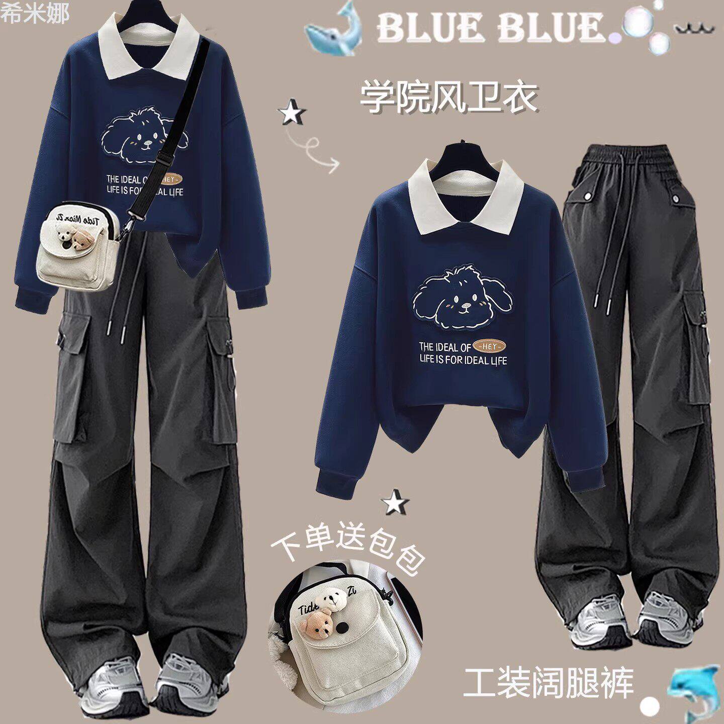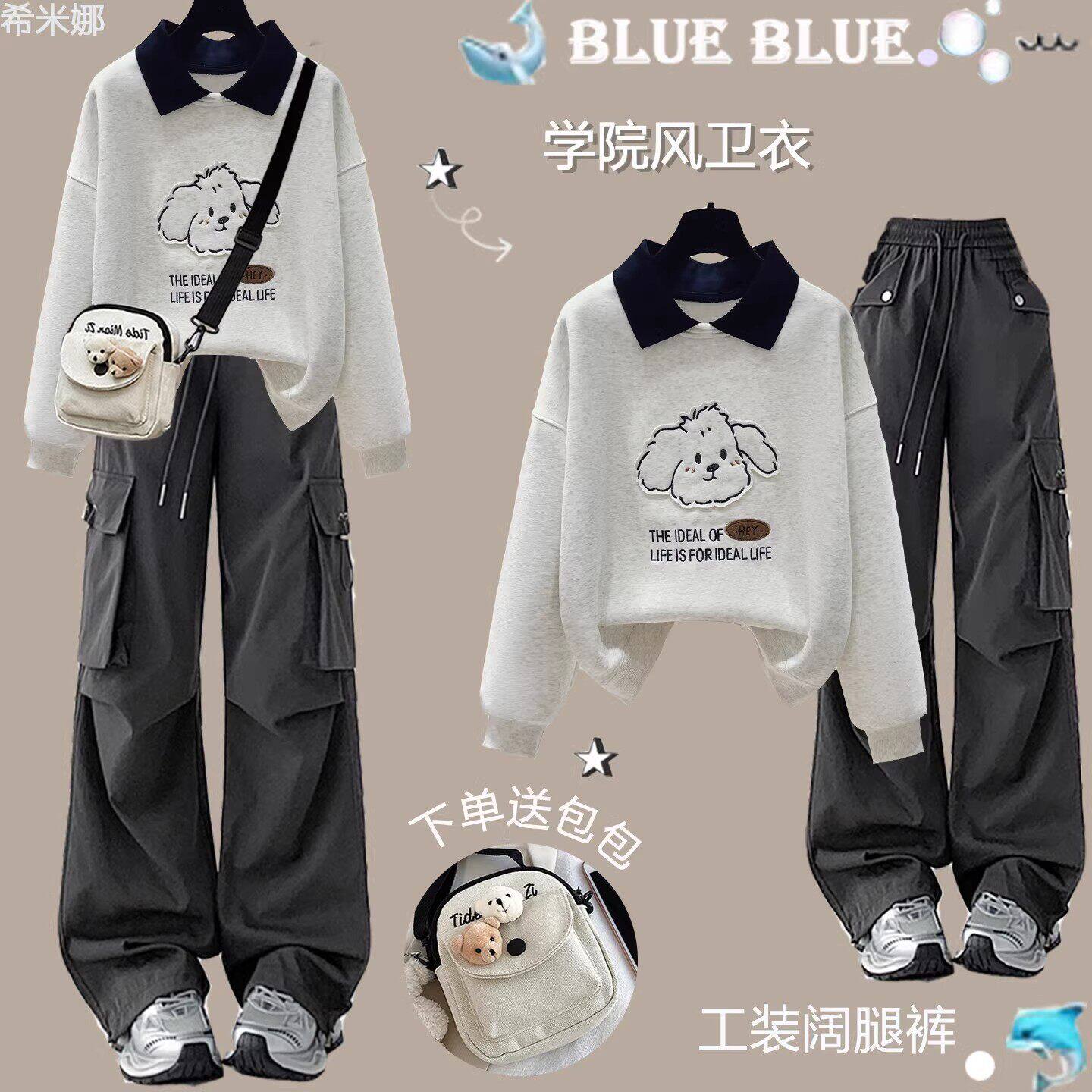 女童春装套装2026新款12岁13中大童15学生洋气卫衣时髦轻奢工装裤
