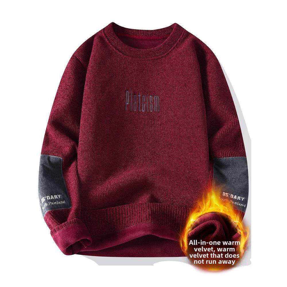 一体绒圆领卫衣男生秋冬季加绒加厚青少年初中高中学生针织打底衫