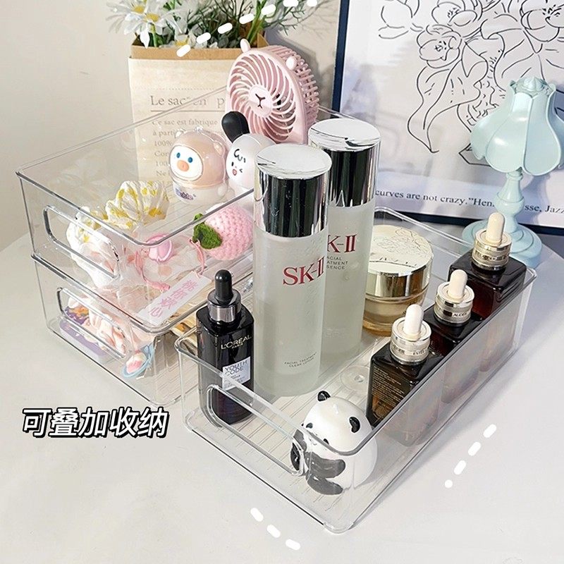 桌面收纳盒亚克力化妆品透明筐宿舍面膜抽屉整理箱零食杂物置物架